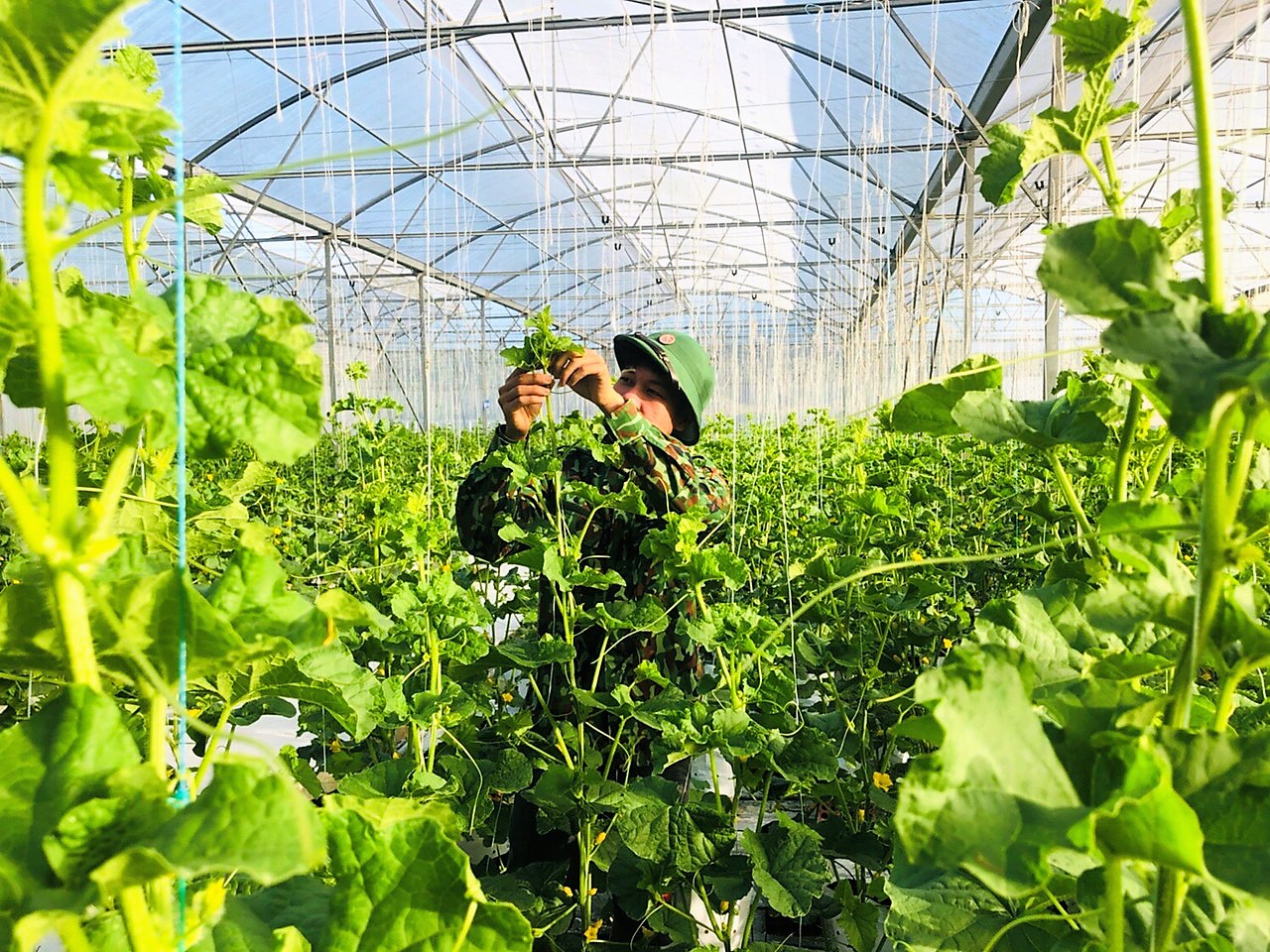 Trung tá Đoàn Xuân Sơn, Chính ủy Trung đoàn Minh Đạm cho biết: “Trung đoàn vay vốn Bộ Chỉ huy quân sự tỉnh để chuyển đổi mô hình tăng gia sản xuất trồng dưa lưới công nghệ cao, áp dụng hình thức tưới nhỏ giọt để tiết kiệm và tăng năng suất cây trồng; trồng thí điểm 1.000m2 cây sâm đất, mua và chăm sóc 200 cây hoa hồng giống Sapa vừa để xây dựng cảnh quan đơn vị cùng với sản xuất chế phẩm sinh học để bón cây và bán ra thị trường, thu được hiệu quả kinh tế cao; chăn nuôi gia súc, gia cầm phát triển tốt (số lượng đàn heo 90 con, gia cầm các loại là 200 con)”. Hiện Trung đoàn đang chủ động phát triển tăng gia sản xuất, chăn nuôi, phấn đấu tự túc 100% rau, củ, quả các loại; 70% rau gia vị thiết yếu; 100% định lượng thịt các loại, 35% định lượng cá trở lên.