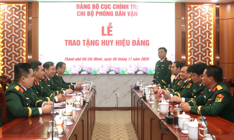 Tại buổi lễ, Đại tá Phạm Anh Tuấn, Đảng ủy viên Đảng ủy Cục Chính trị, Trưởng Phòng Dân vận trao Huy hiệu 30 năm tuổi Đảng và tặng biểu trưng kỷ niệm cho Thượng tá Nguyễn Thành Hưng. Đồng thời chúc mừng, ghi nhận và biểu dương những đóng góp của đồng chí trong quá trình công tác, cống hiến xây dựng đơn vị.