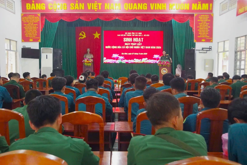(QK7 Online) - Chiều 7/11, Cơ quan Điều tra hình sự khu vực 4/Quân khu 7 đã phối hợp cùng Ban Chỉ huy phòng thủ khu vực 2/Bộ Chỉ huy Quân sự Tây Ninh và Công an phường Gò Dầu tổ chức sinh hoạt ngày Pháp luật nước Cộng hòa xã hội chủ nghĩa Việt Nam.