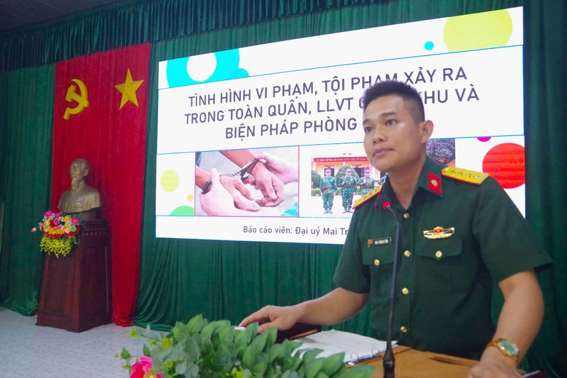 Tại buổi sinh hoạt, Báo cáo viên Cơ quan Điều tra hình sự khu vực 4 đã thông tin đến toàn thể cán bộ, chiến sĩ của các đơn vị trực thuộc Ban Chỉ huy phòng thủ khu vực 2 về tình hình vi phạm pháp luật, tội phạm xảy ra trong toàn quân và lực lượng vũ trang Quân khu 7 trong 10 tháng đầu năm 2025.