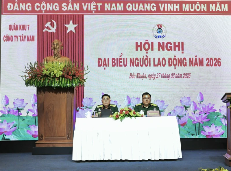 (QK7 Online) - Chiều 27/3, tại Thành phố Hồ Chí Minh, Công ty Tây Nam tổ chức hội nghị đại biểu người lao động năm 2026. Thừa uỷ quyền Bộ Tư lệnh Quân khu, dự hội nghị có Đại tá Nguyễn Thanh Tâm, Chủ nhiệm Hậu cần - Kỹ thuật Quân khu; Đại tá Nguyễn Như Trúc, Phó Chủ nhiệm Chính trị Quân khu. Thượng tá Huỳnh Gia Bảo, Tổng Giám đốc Công ty chủ trì hội nghị.