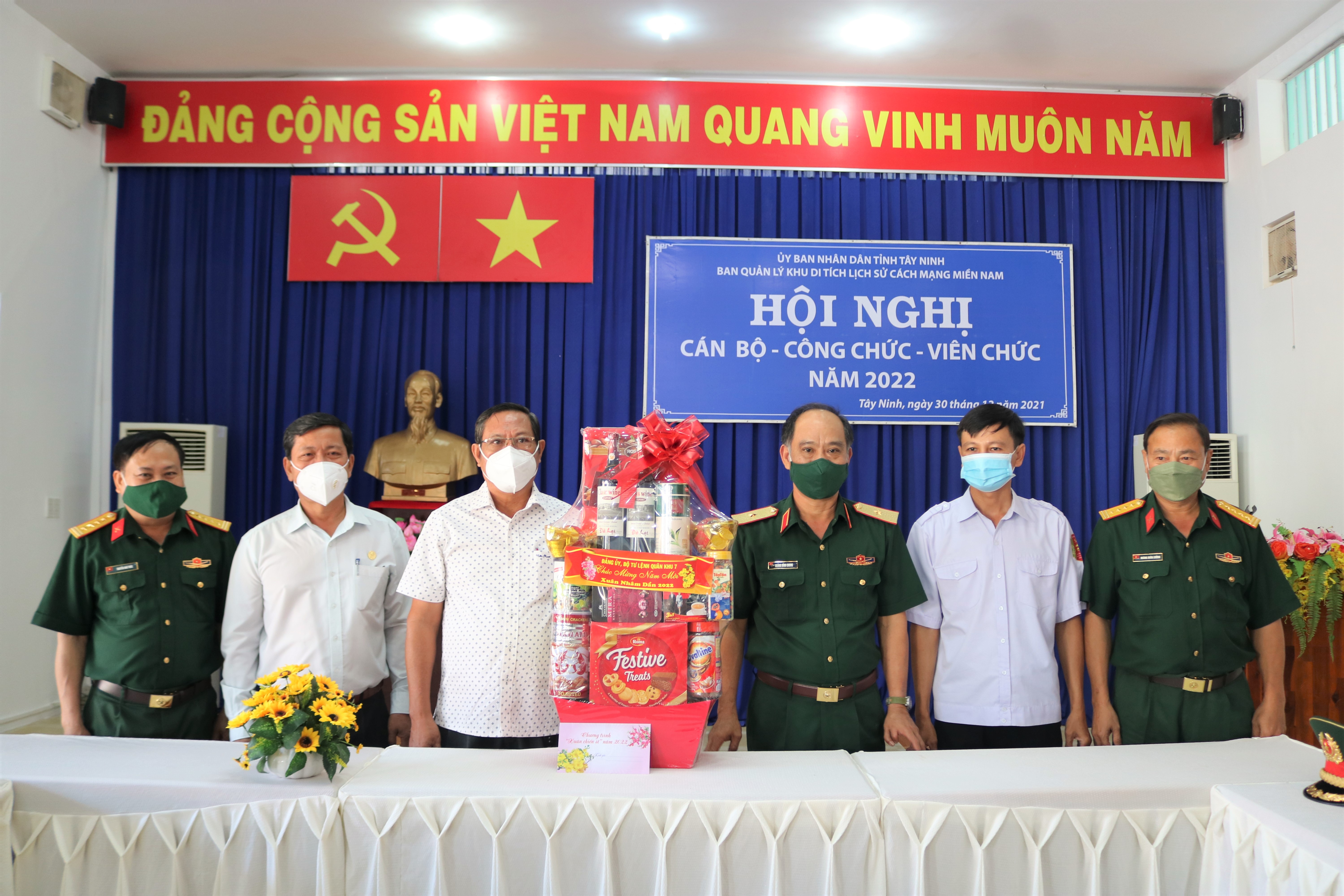 Thủ trưởng Cục Chính trị Quân khu tặng quà chúc mừng năm mới Ban Quản lý Khu di tích lịch sử cách mạng miền Nam.