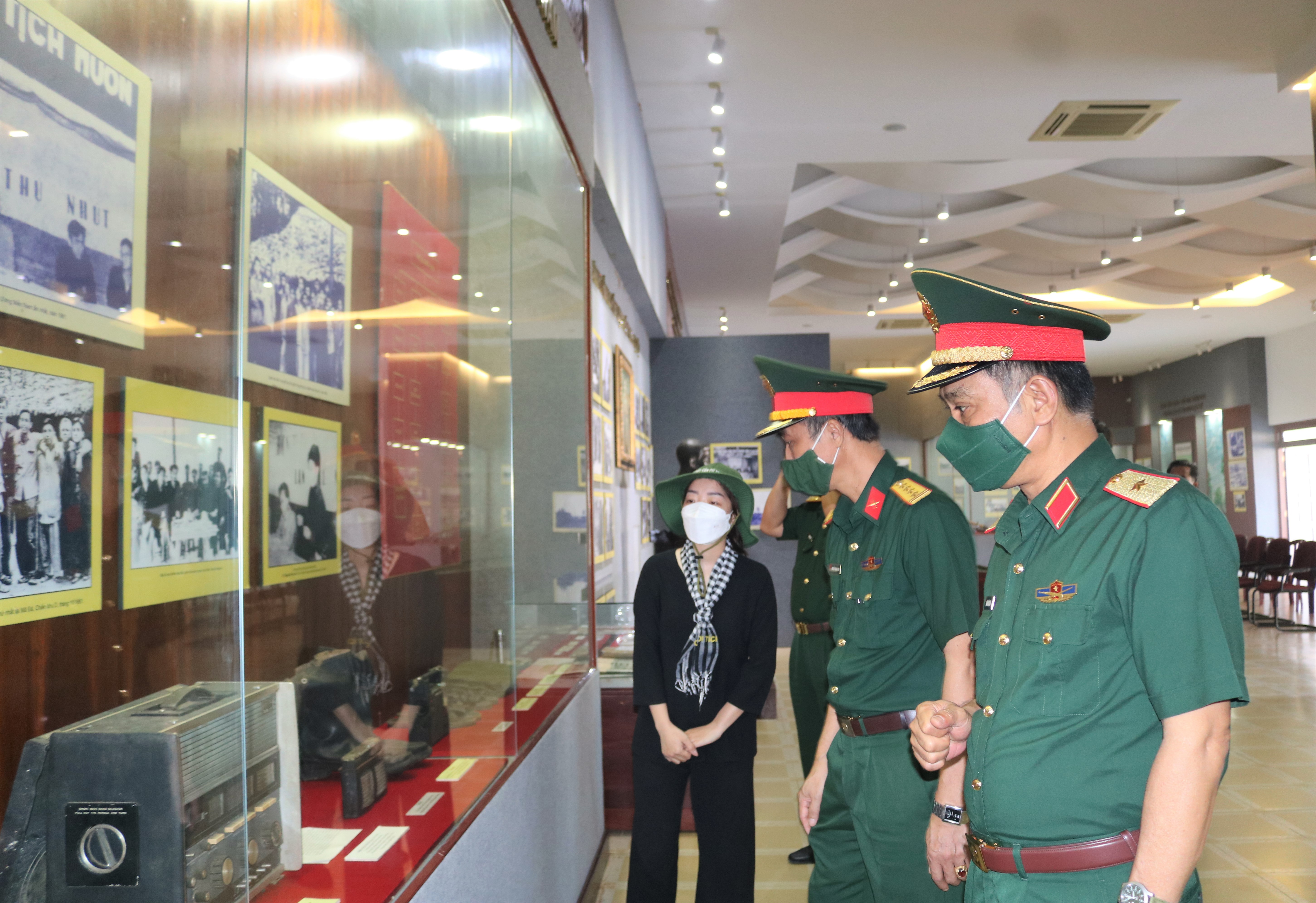 Thiếu tướng Hoàng Đình Chung tham quan các hiện vật tại Nhà trưng bày.