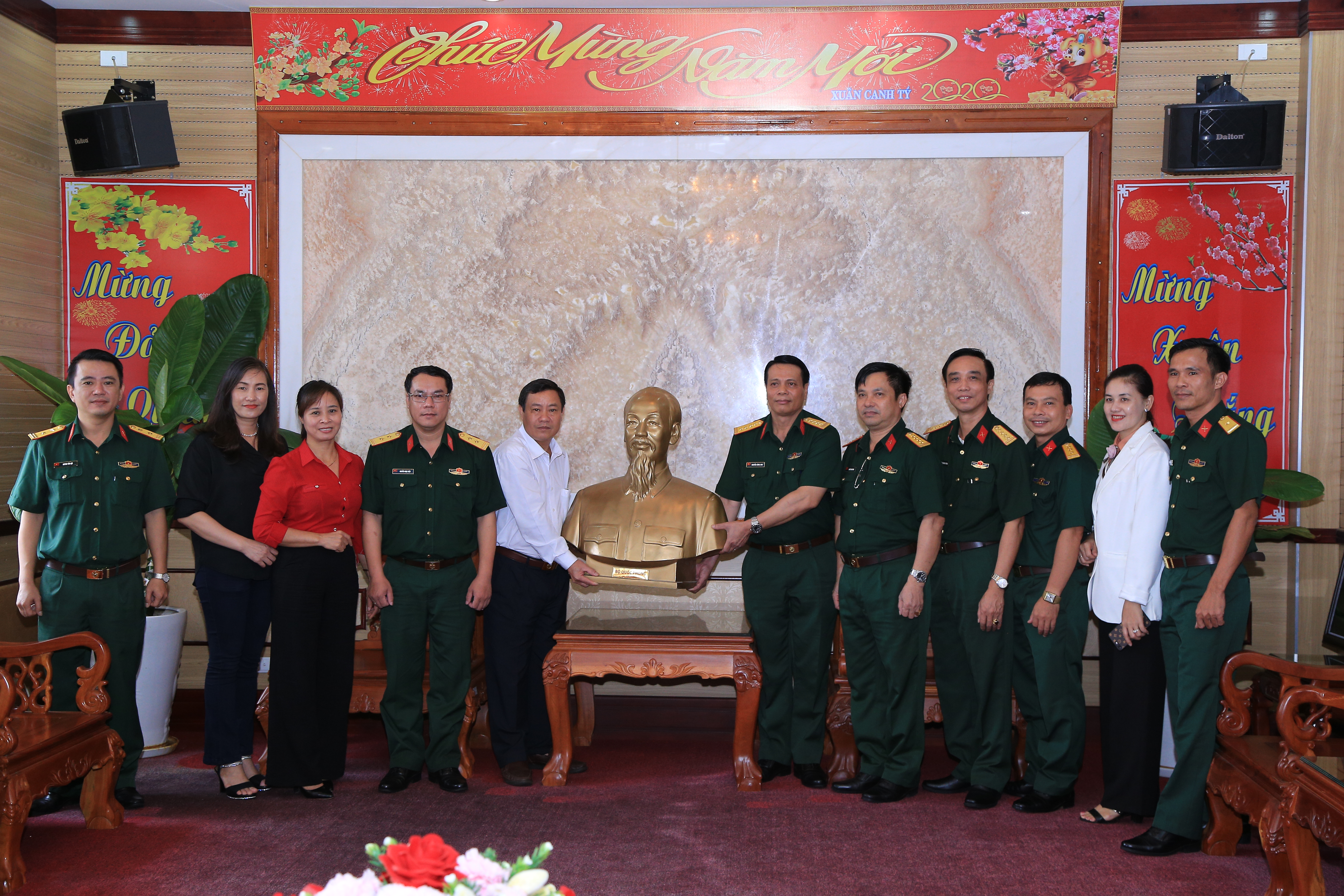 Đoàn công tác tặng tượng bán thân Chủ tịch Hồ Chí Minh cho Thị ủy, UBND thị xã Phước Long.