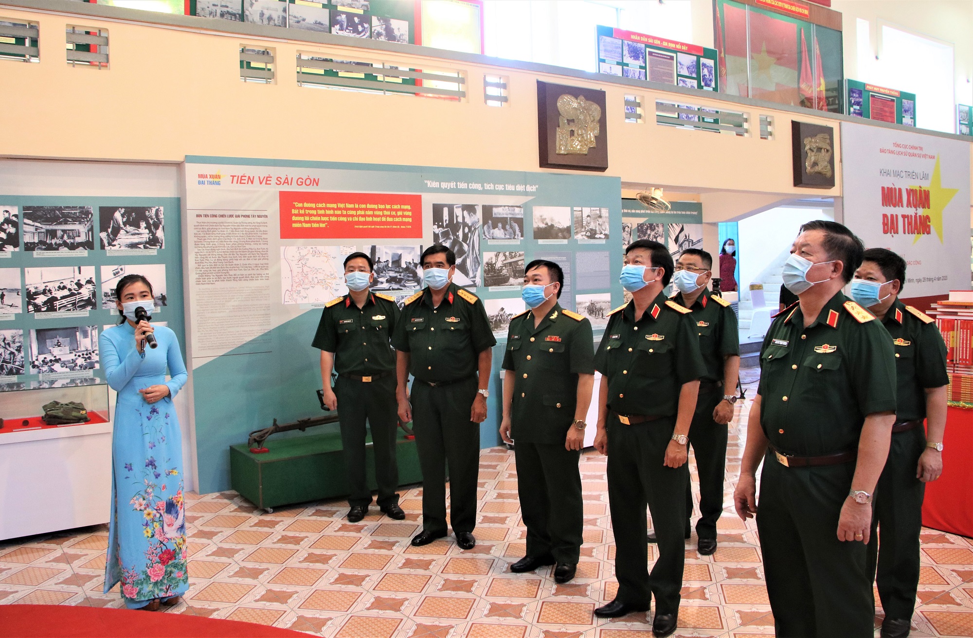 Thủ trưởng Tổng cục Chính trị và Quân khu 7 tham quan triển lãm chuyên đề “Mùa Xuân đại thắng” tại Bảo tàng Chiến dịch Hồ Chí Minh.