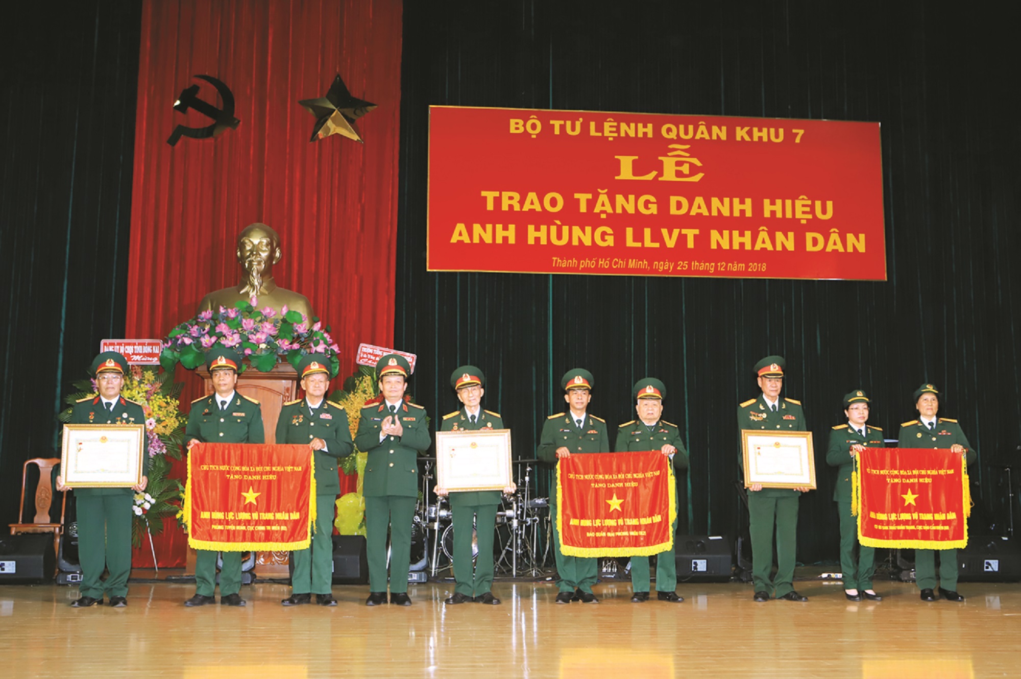 Thừa ủy quyền của Chủ tịch nước, Trung tướng Trần Hoài Trung, Bí thư Đảng ủy, Chính ủy Quân khu trao tặng danh hiệu Anh hùng LLVT Nhân dân cho các đơn vị thuộc Cục Chính trị.