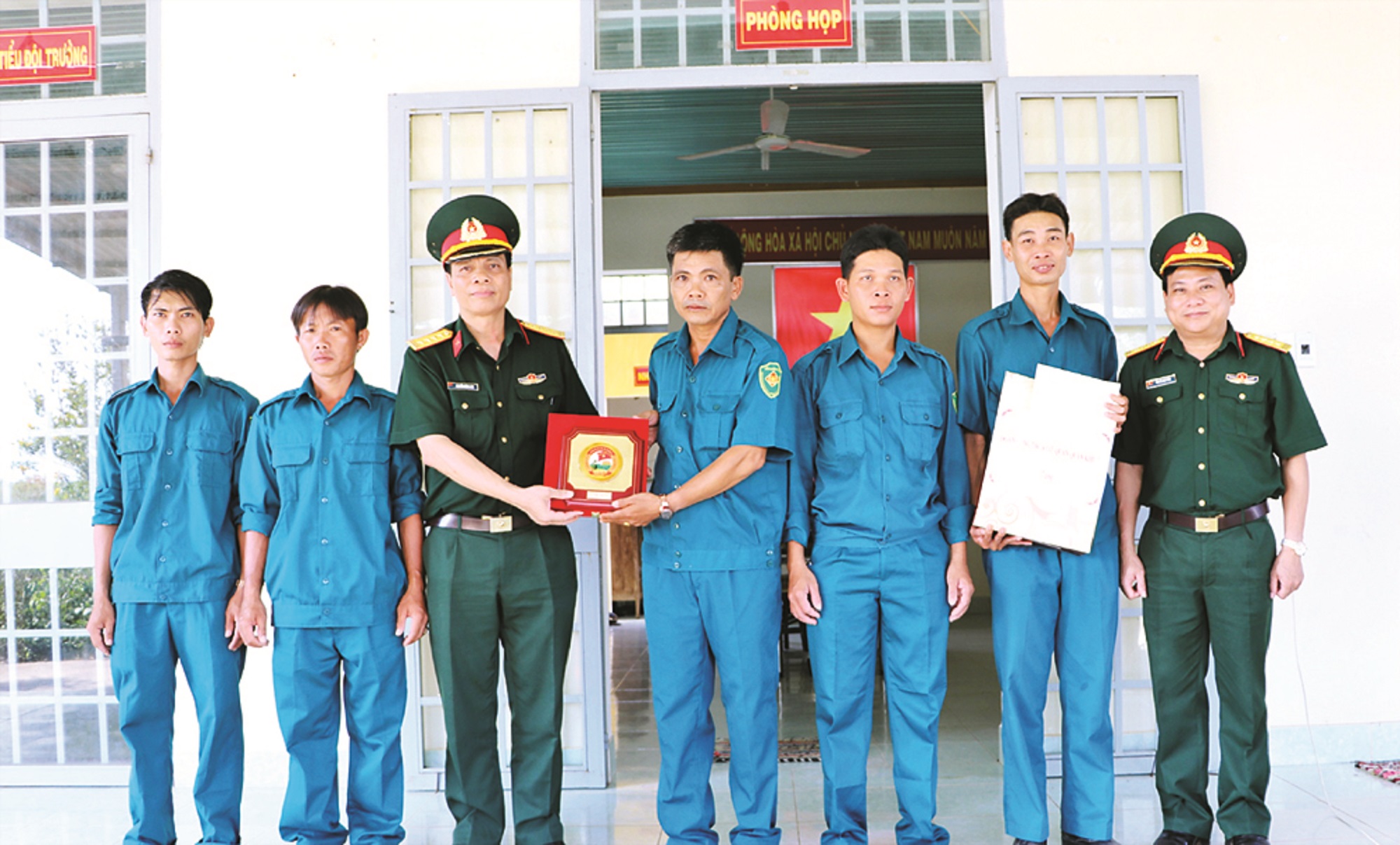 Thủ trưởng Cục Chính trị Quân khu tặng quà các chốt dân quân biên giới.