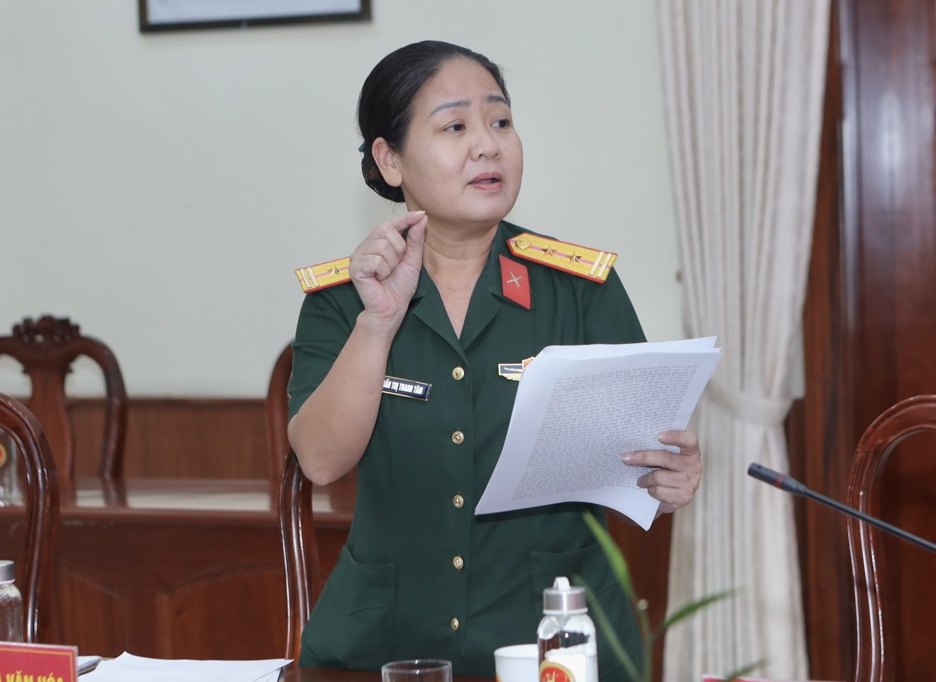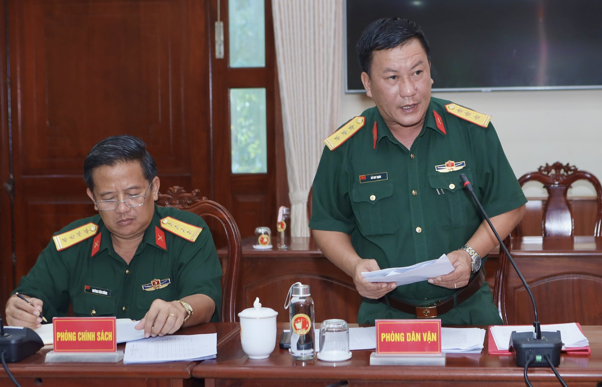 Thiếu tướng Trần Chí Tâm, Bí thư Đảng ủy Cục Chính trị, Phó Chủ nhiệm Chính trị Quân khu chủ trì hội nghị.