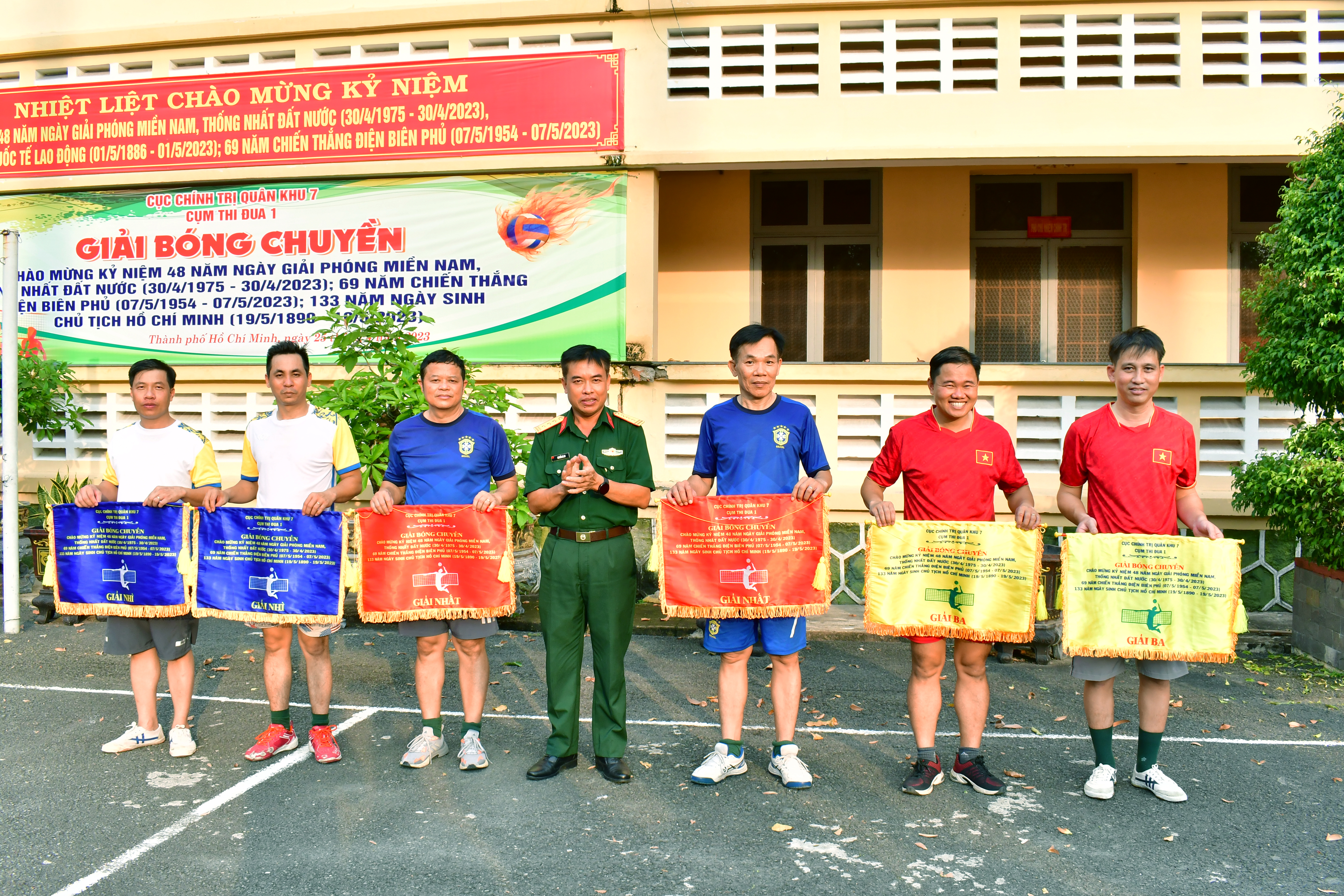 Thượng tá Nguyễn Bá An, Phó Trưởng Phòng Tuyên huấn, Cục Chính trị Quân khu 7 đại diện Cụm trưởng Cụm thi đua 1 trao thưởng cho các đội.