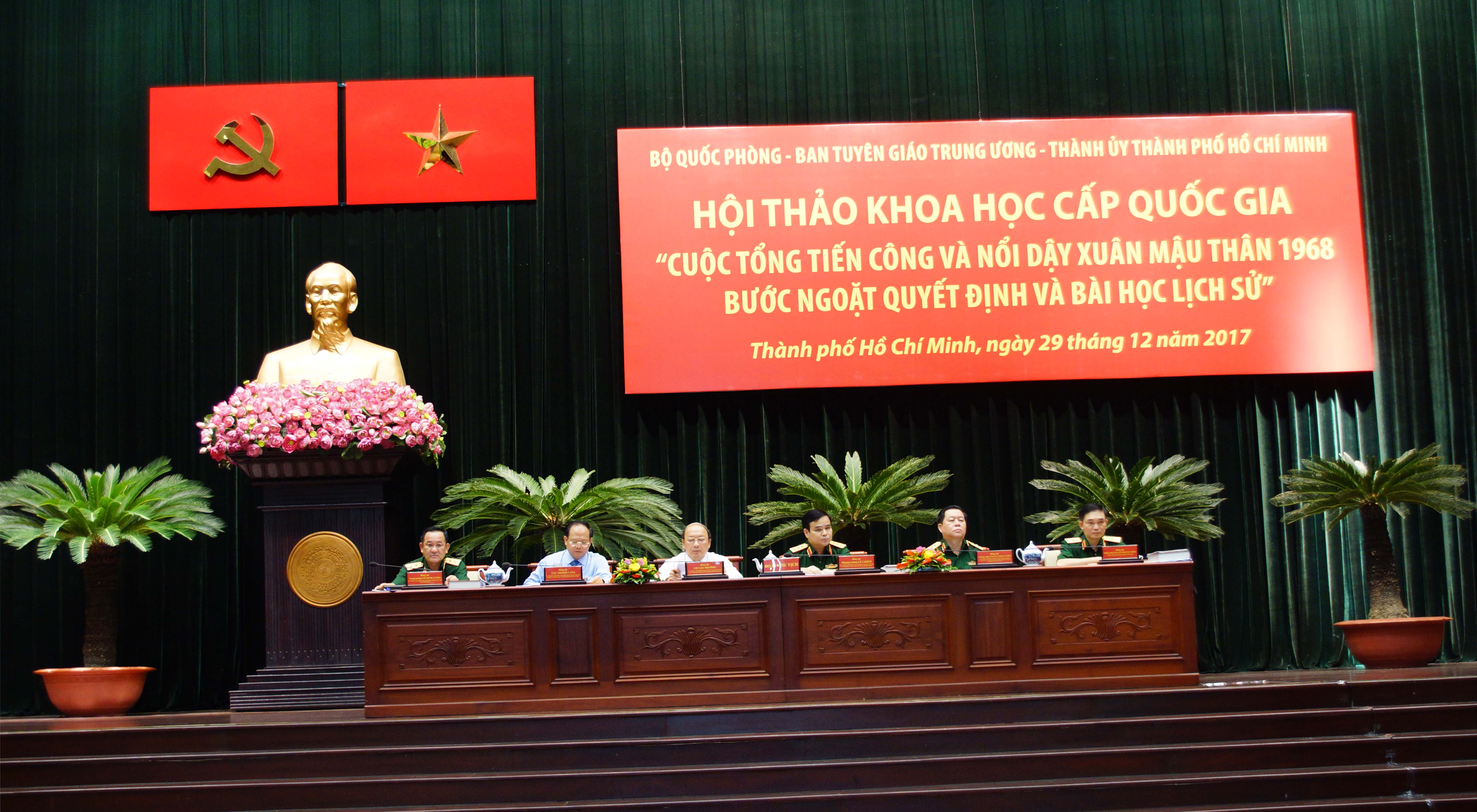 (QK7 Online) -  Sáng ngày 29/12/2017, tại Hội trường Thành ủy Thành phố Hồ Chí Minh, Bộ Quốc phòng – Ban Tuyên giáo Trung ương – Thành ủy Thành phố Hồ Chí Minh tổ chức Hội thảo khoa học cấp quốc gia “Cuộc Tổng tiến công và nổi dậy Xuân Mậu Thân 1968 bước ngoặt quyết định và bài học lịch sử”.