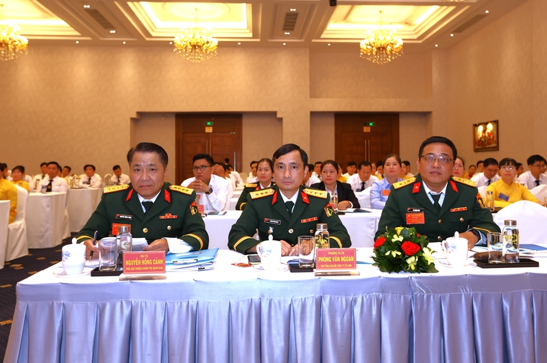 Đại tá Nguyễn Hồng Cảnh, Phó Chủ nhiệm Chính trị Quân khu 7 (bìa trái) dự đại hội.