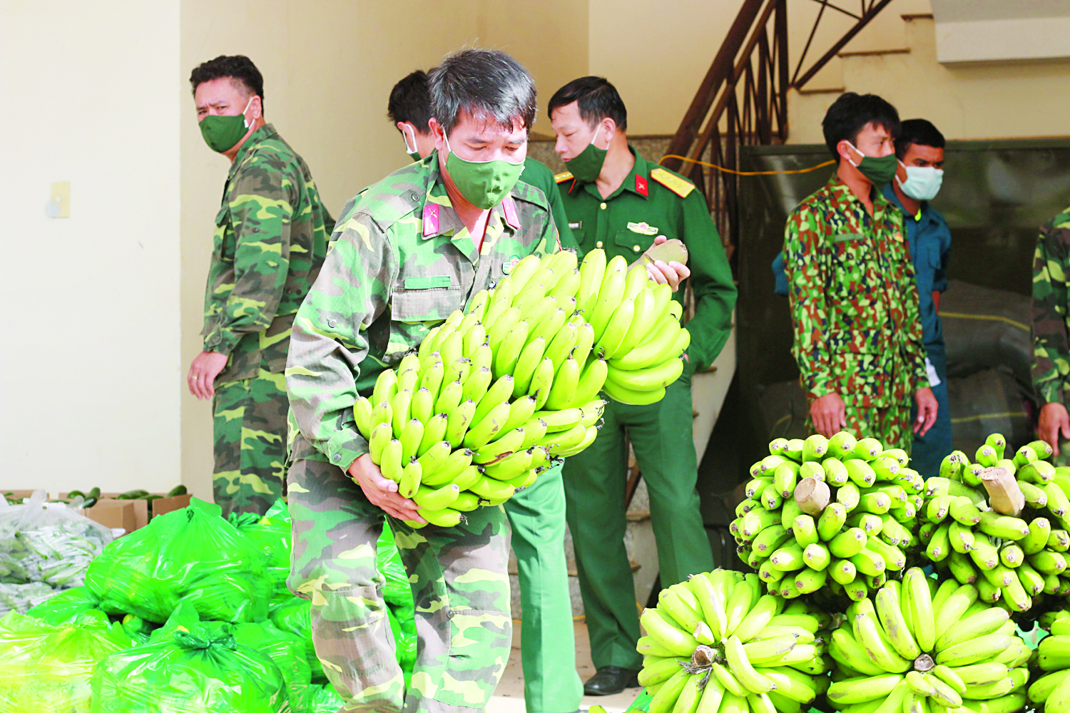 Đối với công tác bảo đảm hậu cần thường xuyên, ngành Hậu cần bảo đảm chế độ ăn cho cán bộ, chiến sĩ đúng, đủ tiêu chuẩn định lượng theo quy định của Bộ Quốc phòng. Các suất ăn cho đối tượng là công dân cách ly được đảm bảo. Các đơn vị đẩy mạnh tăng gia sản xuất, chế biến, tiết kiệm, tự túc chất đốt… Cụ thể, đối với công tác tăng gia sản xuất, các đơn vị chủ động lập kế hoạch, đặt ra chỉ tiêu và xác định biện pháp thực hiện sát với tình hình đơn vị. Theo đó, vật nuôi, cây trồng được phát triển đa dạng, phù hợp. Các mô hình nhà kính trồng rau được phát triển ở nhiều đơn vị. Nhờ vậy, ngoài đảm bảo quân nhu, bảo đảm đời sống cán bộ, chiến sĩ ở các đơn vị, nguồn thu từ tăng gia sản xuất và làm kinh tế trong toàn tỉnh đạt 12,9 tỷ đồng, bình quân 13,98 triệu đồng/người. Các đơn vị trong LLVT áp dụng nhiều hình thức và biện pháp tiết kiệm chất đốt, một số đơn vị tận dụng củi khô, vỏ cà phê, tự túc được chất đốt và nhập sản phẩm tăng gia sản xuất giá rẻ hơn 15 - 20% so với giá thị trường.