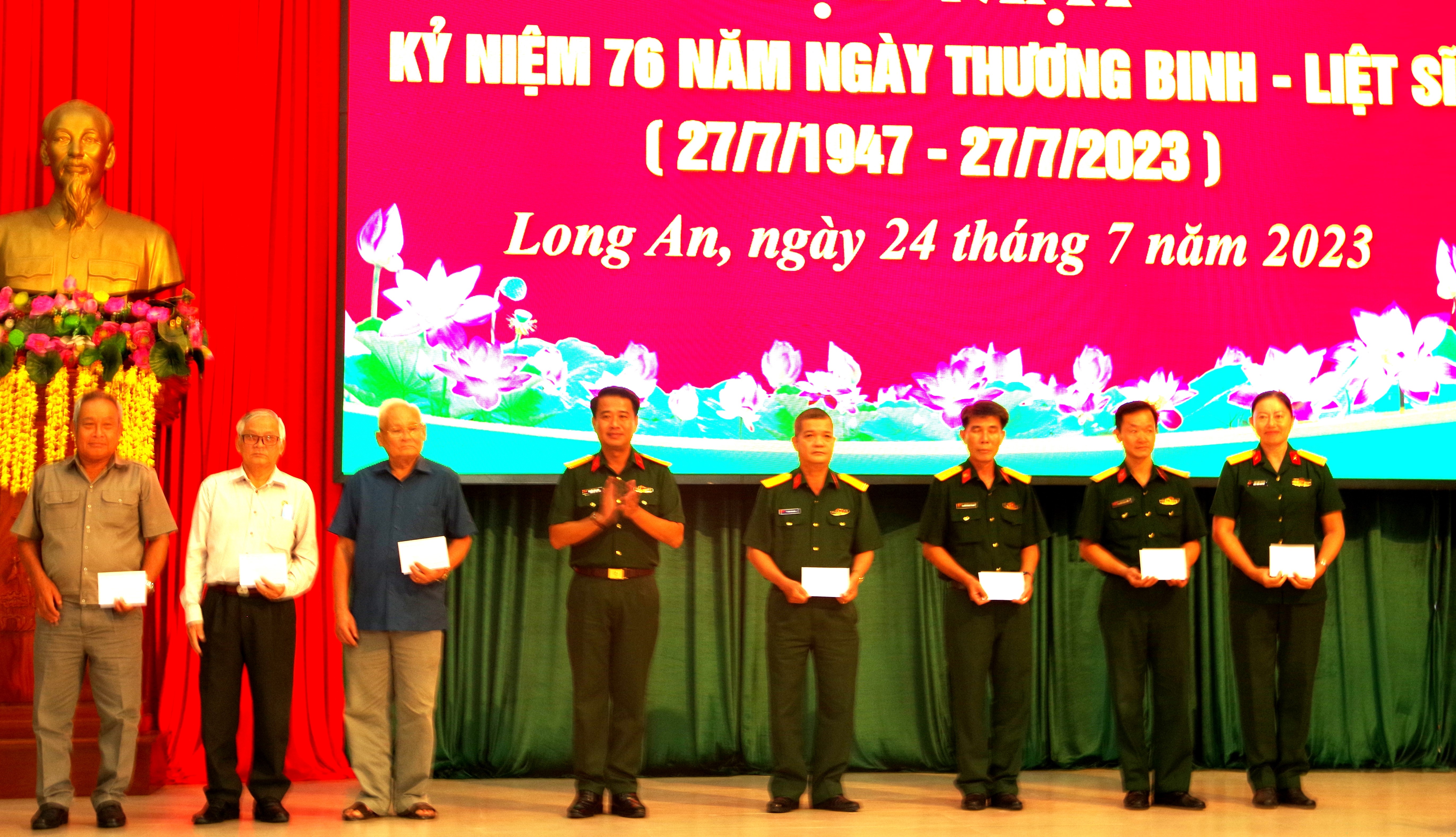 (QK7 Online) - Sáng 24/7, Đảng ủy, Bộ CHQS tỉnh Long An tổ chức gặp mặt kỷ niệm 76 năm Ngày Thương binh - Liệt sĩ (27/7/1947 – 27/7/2023). Đồng chí Mai Văn Nhiều – Phó Chủ tịch Thường trực HĐND tỉnh đến dự. Đại tá Lê Minh Trung – Phó Bí thư Thường trực Đảng ủy Quân sự tỉnh, Chính ủy Bộ CHQS tỉnh chủ trì buổi gặp mặt.