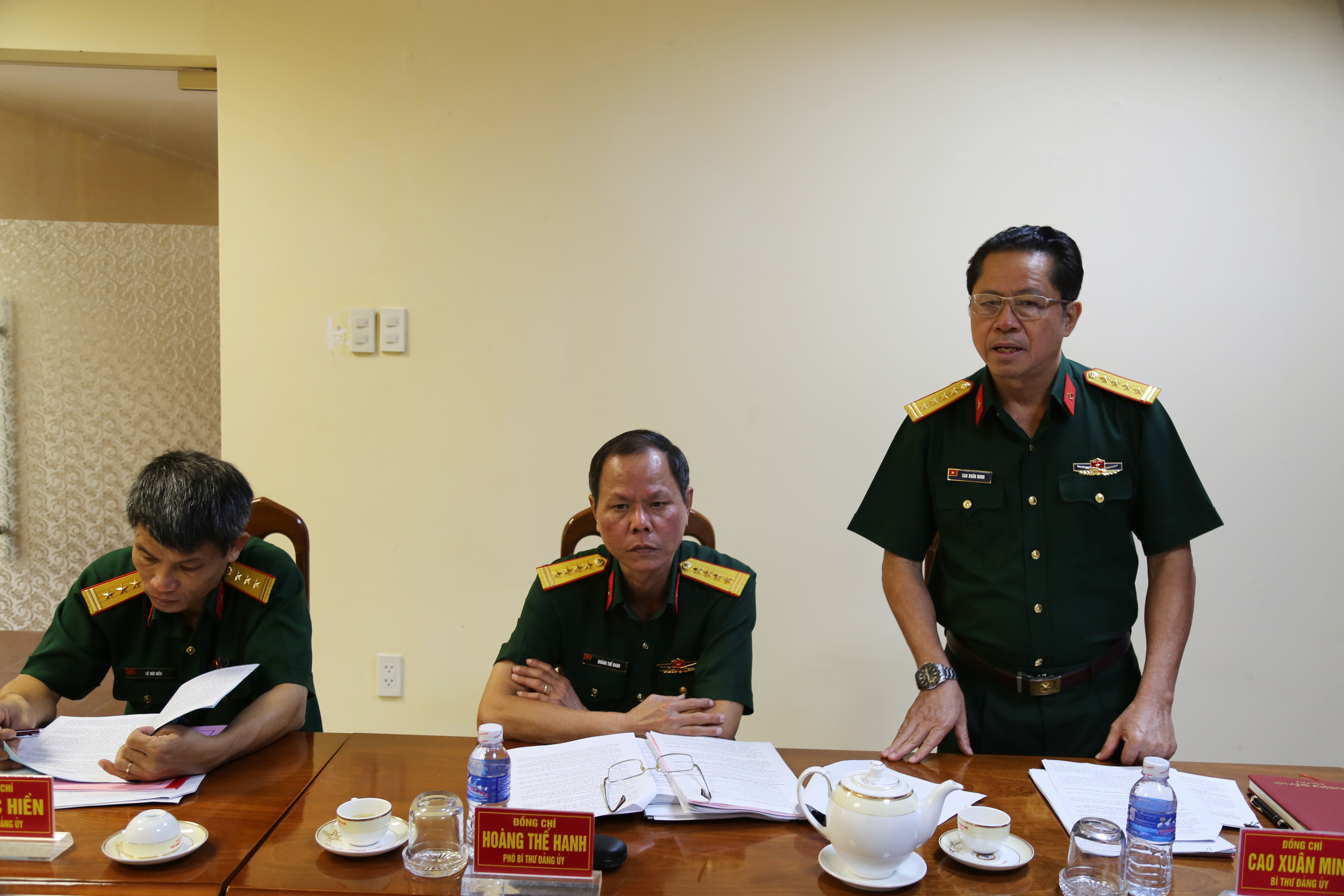 Đại tá Cao Xuân Minh, Chủ tịch Hội đồng Quản trị, Bí thư Đảng ủy Công ty Đông Hải báo cáo dự thảo Nghị quyết lãnh đạo thực hiện nhiệm vụ năm 2021.