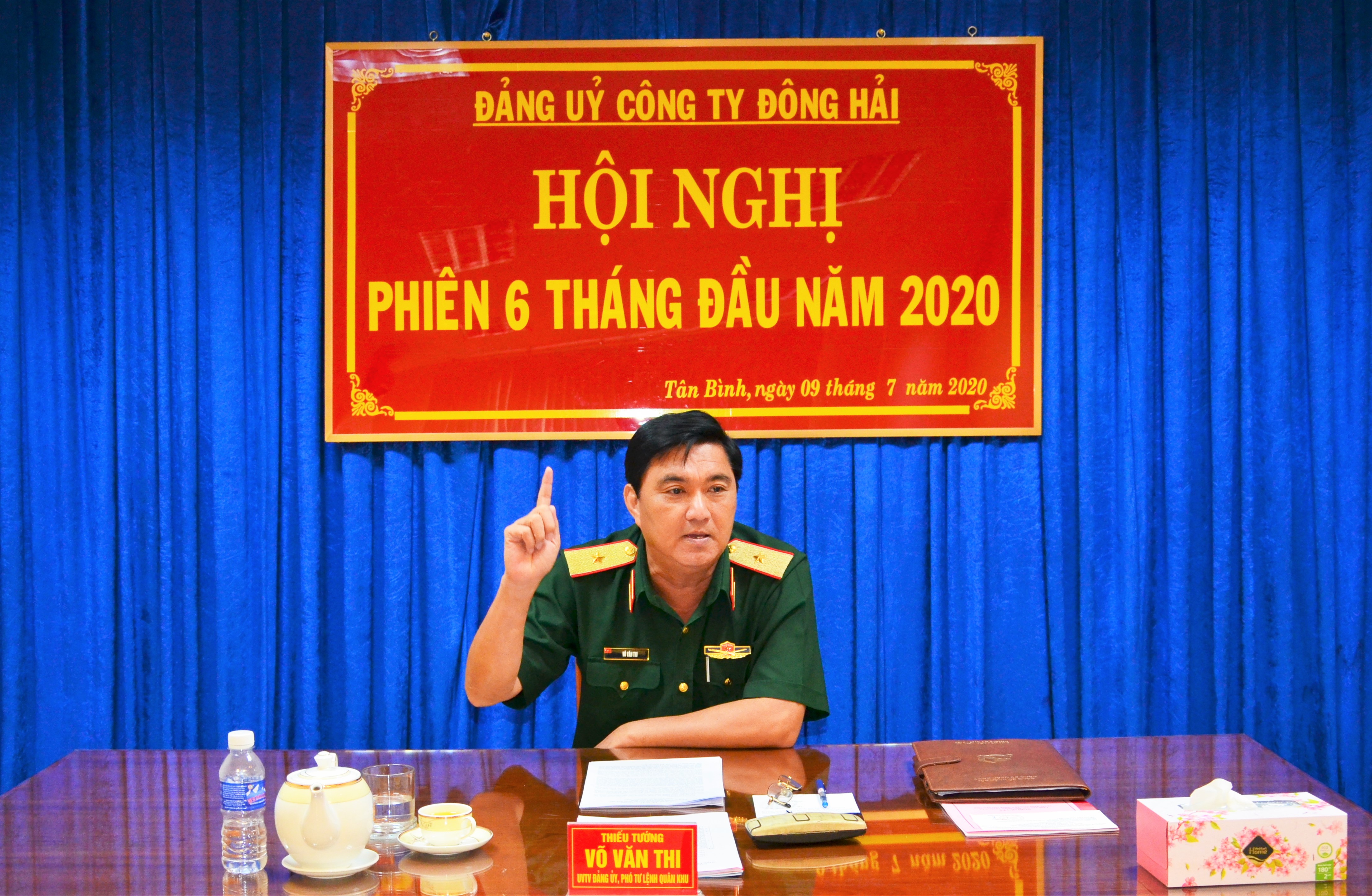 (QK7 Online) - Ngày 9-7, Đảng ủy Công ty Đông Hải tổ chức hội nghị ra nghị quyết lãnh đạo thực hiện nhiệm vụ chính trị và xây dựng Đảng bộ 6 tháng cuối năm 2020. Thiếu tướng Võ Văn Thi, Ủy viên Thường vụ Đảng ủy, Phó Tư lệnh Quân khu 7 đến dự và phát biểu chỉ đạo.