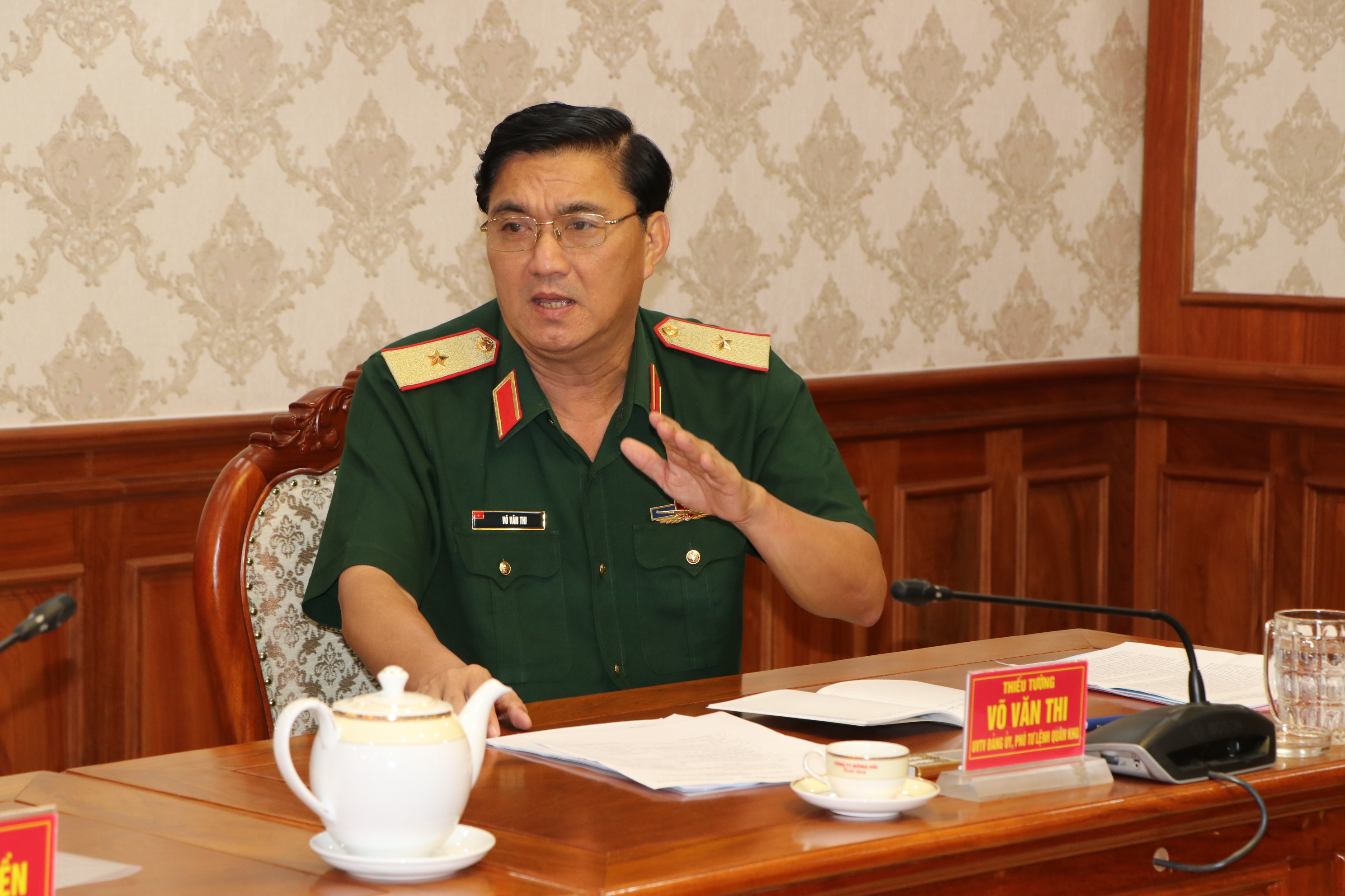 Thiếu tướng Võ Văn Thi, Ủy viên Thường vụ Đảng ủy, Phó Tư lệnh Quân khu 7 phát biểu chỉ đạo tại hội nghị.
