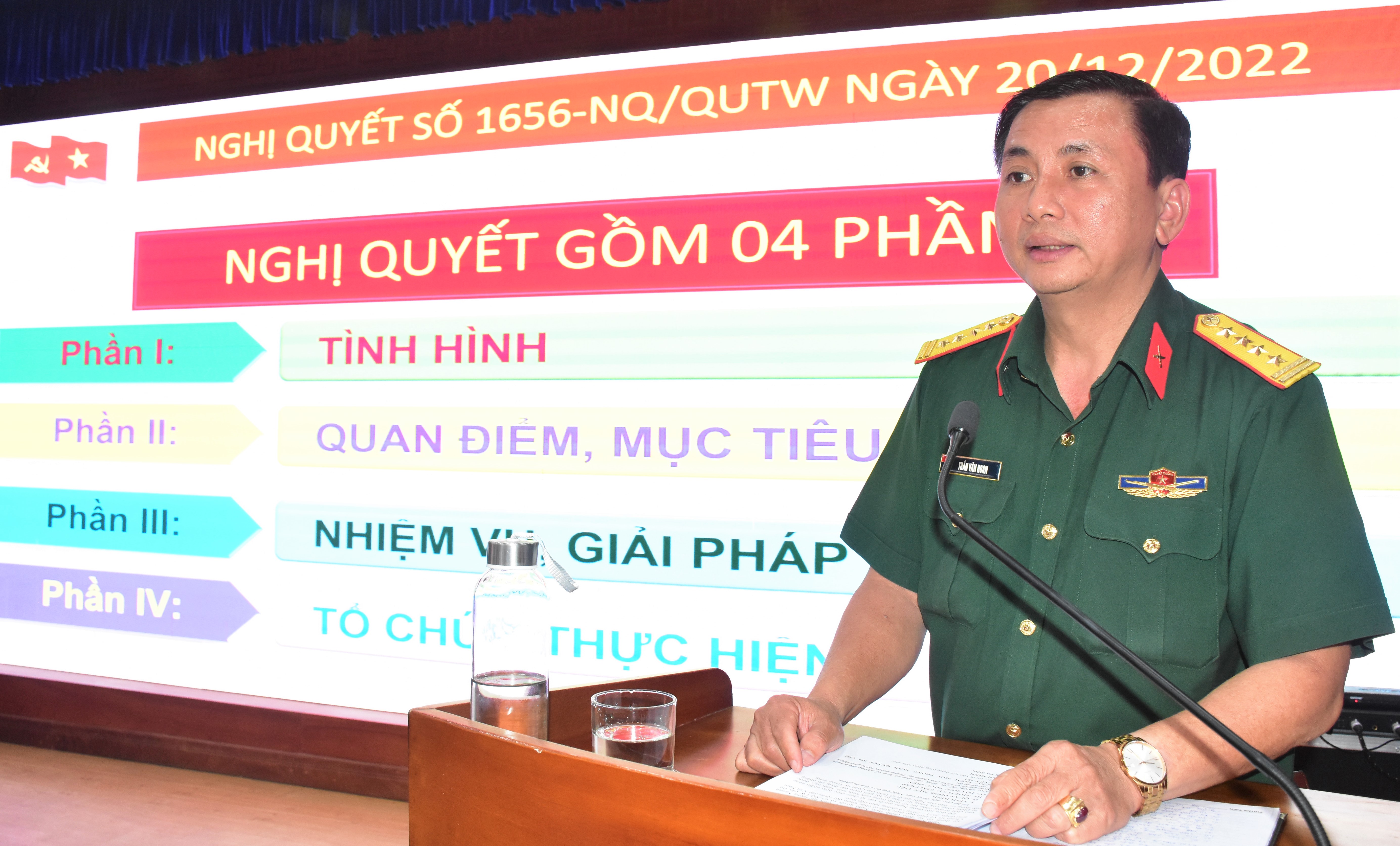 Đại tá Nguyễn Nguyễn Như Trúc, Phó Chủ nhiệm Chính trị Quân khu quán triệt, triển khai thực hiện các chuyên đề về đổi mới công tác giáo dục, công tác huấn luyện và công tác khoa học quân sự.