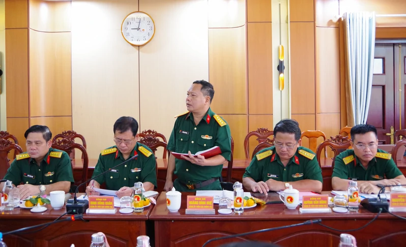 Thiếu tướng Phạm Anh Tuấn, Ủy viên Thường vụ Đảng ủy Quân khu, Phó Bí thư Đảng ủy Cục Chính trị, Chủ nhiệm Chính trị Quân khu báo cáo tóm tắt kết quả thực hiện nhiệm vụ năm 2025 và đề xuất một số nội dung Đảng ủy cần tập trung lãnh đạo.