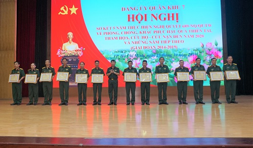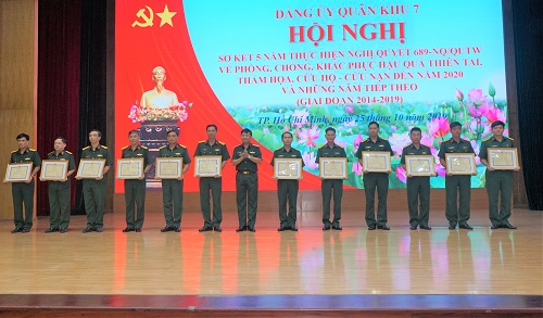 Tại hội nghị, Đảng ủy Quân khu đã khen thưởng cho 13 tập thể và 21 cá nhân đạt thành tích xuất sắc trong thực hiện Nghị quyết 689 của Quân ủy Trung ương giai đoạn 2014 – 2019.