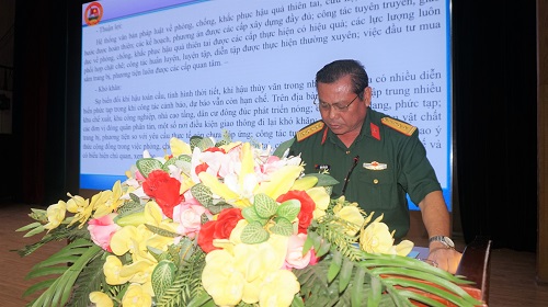 Đại tá Đặng Văn Lẫm, Phó Tham mưu trưởng Quân khu trình bày báo cáo tại hội nghị.