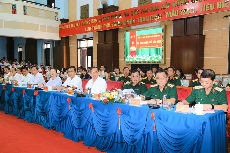Năm 2025, Đảng ủy Quân sự TPHCM đã tham mưu cho Thành ủy, UBND Thành phố lãnh đạo, chỉ đạo triển khai thực hiện nghiêm túc, chặt chẽ, hiệu quả đường lối, chủ trương của Đảng, chính sách, pháp luật của Nhà nước về nhiệm vụ quân sự, quốc phòng, bảo vệ Tổ quốc kết hợp phát triển kinh tế - xã hội gắn với củng cố quốc phòng, an ninh; hoàn thành công tác tuyển chọn và gọi công dân nhập ngũ, chất lượng cao hơn năm 2024, đón tiếp hơn 6.500 quân nhân hoàn thành nghĩa vụ quân sự trở về địa phương chu đáo, trang trọng. Xây dựng lực lượng dự bị động viên đúng luật, chất lượng tốt kết hợp xây dựng lực lượng DQTV vững mạnh, rộng khắp; củng cố, kiện toàn nâng cao chất lượng hoạt động của Ban CHQS cấp xã; lãnh đạo duy trì tốt mối quan hệ hợp tác kết nghĩa với 33 đơn vị thuộc Quân đội Hoàng gia Campuchia, Quân khu Santiago De Cuba/Bộ các LLVT cách mạng Cu Ba và Bộ CHQS tỉnh Champasak/Quân đội Nhân dân Lào. Huấn luyện khối nữ Du kích miền Nam, khối Tiêu binh lễ đài, 12 khối diễu hành quần chúng tham gia Lễ kỷ niệm 50 năm Ngày giải phóng miền Nam, thống nhất đất nước và khối nữ Du kích miền Nam tham gia diễu binh, diễu hành trong Lễ kỷ niệm 80 năm Ngày Quốc khánh nước CHXHCN Việt Nam hoàn thành xuất sắc nhiệm vụ; tham gia hội thi, hội thao các cấp đạt kết quả cao…