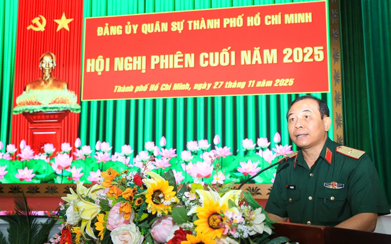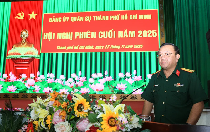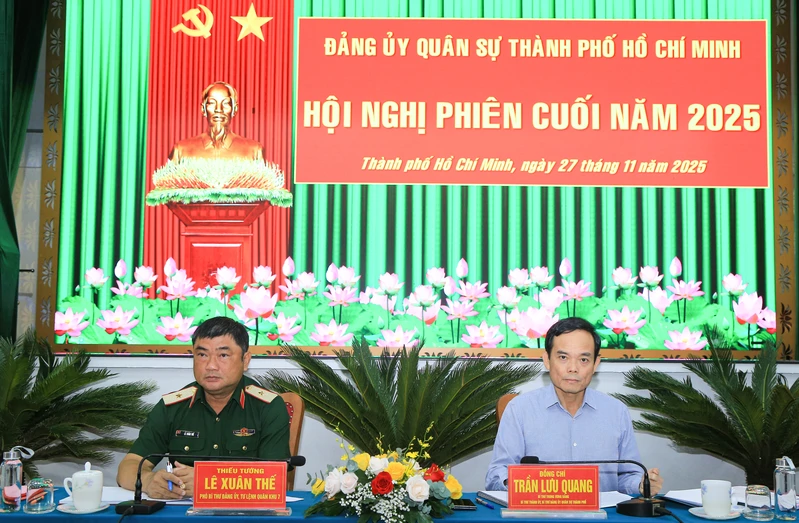 (QK7 Online) - Sáng 27/11, Đảng ủy Quân sự Thành phố Hồ Chí Minh (TPHCM) tổ chức hội nghị phiên cuối năm 2025. Thiếu tướng Lê Xuân Thế, Phó Bí thư Đảng ủy, Tư lệnh Quân khu 7 đến dự và phát biểu chỉ đạo. Đồng chí Trần Lưu Quang, Bí thư Trung ương Đảng, Bí thư Thành ủy, Bí thư Đảng ủy Quân sự Thành phố chủ trì hội nghị.