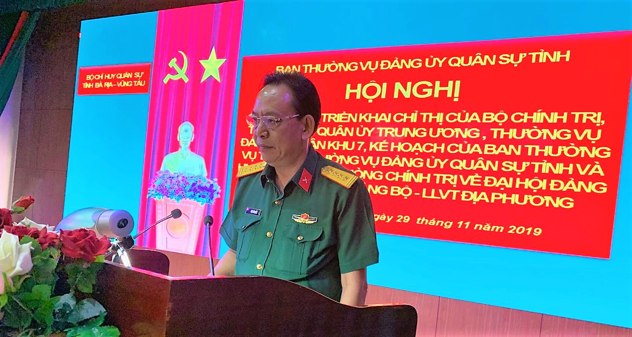 Các đại biểu được triển khai, phổ biến Kế hoạch số 01 ngày 16/9/2019 của Ban Thường vụ ĐUQS tỉnh về chuẩn bị và tổ chức Đại hội Đảng các cấp trong Đảng bộ - LLVT địa phương; các quyết định của Ban Thường vụ ĐUQS tỉnh về việc thành lập Tiểu ban văn kiện, Tiểu ban nhân sự đại hội, Tiểu ban bảo đảm phục vụ, Tiểu ban bảo vệ Đại hội Đảng bộ Quân sự tỉnh lần thứ VII, nhiệm kỳ 2020 - 2025 và phân công chỉ đạo Đại hội Đảng bộ cơ sở; các tổ công tác giúp các đồng chí Thường vụ Đảng ủy-Bộ CHQS tỉnh; Hướng dẫn của Phòng Chính trị và UBKT ĐUQS tỉnh về Đại hội Đảng các cấp trong Đảng bộ, LLVT địa phương…
