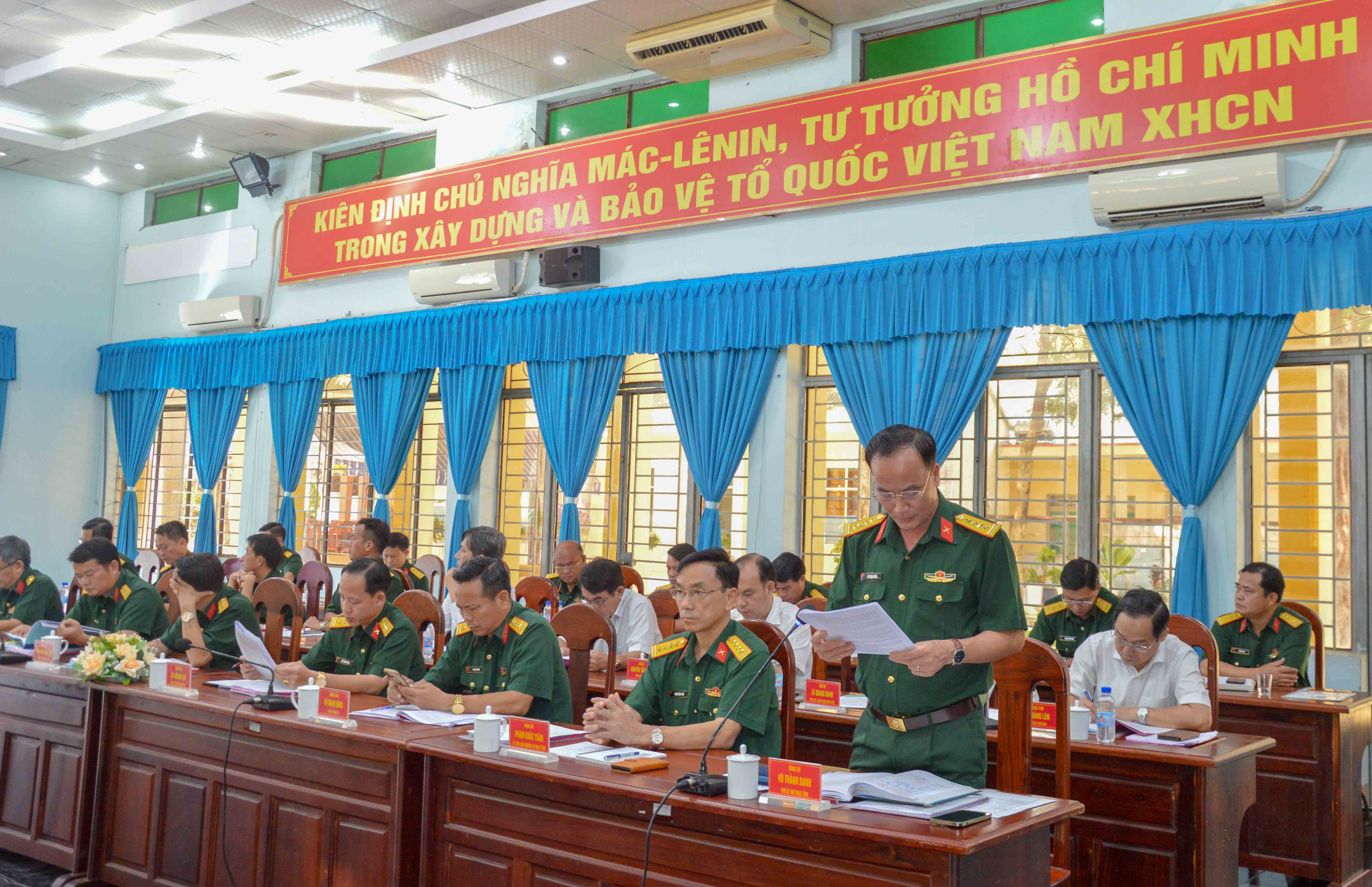 Đại tá Phạm Như Quân, Phó Bí thư thường trực Đảng ủy Quân sự tỉnh, Chính ủy Bộ Chỉ huy Quân sự tỉnh chủ trì hội nghị.
