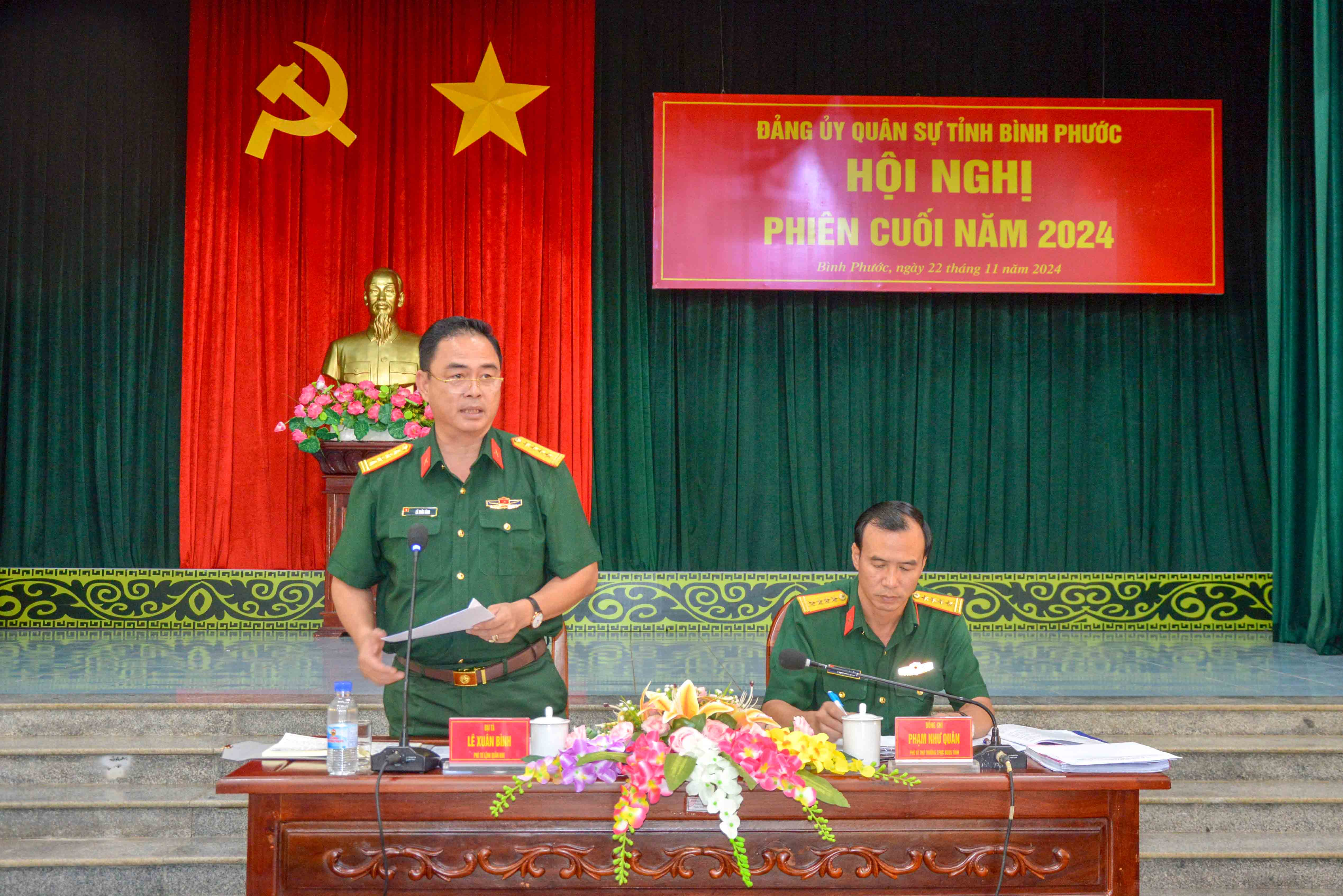 Phát biểu chỉ đạo hội nghị Đại tá Lê Xuân Bình, Phó Tư lệnh Quân khu 7 biểu dương, đánh giá cao những kết quả đạt được trong công tác lãnh đạo của Đảng ủy Quân sự tỉnh Bình Phước về thực hiện nhiệm vụ quân sự quốc phòng địa phương trong năm 2024. Trong đó tổ chức tốt công tác giáo dục, bồi dưỡng kiến thức QP AN cho các đối tượng, góp phần phổ biến, tuyên truyền, nâng cao nhận thức, trách nhiệm của hệ thống chính trị và nhân dân về nhiệm vụ BVTQ; hoàn thành chỉ tiêu tuyển quân ở cả 3 cấp, đảng viên chính thức nhập ngũ đạt 1,92% (vượt 0,92% so với chỉ tiêu Quân khu giao).
