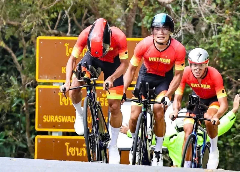 VĐV Nguyễn Anh Trí, đạt Huy chương Vàng ở nội dung Duathlon tại Sea Games 33. Ảnh: CTV