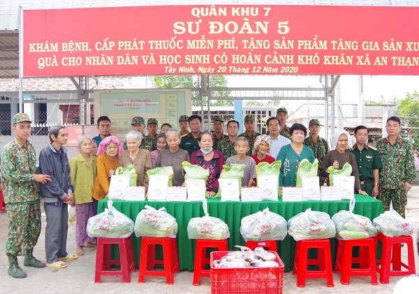 (QK7 Online) - Những ngày cuối năm 2020, gần 500 cán bộ, chiến sĩ Sư đoàn 5 hành quân về các xã An Thạnh, Tiên Thuận (huyện Bến Cầu) và TP. Tây Ninh (tỉnh Tây Ninh) làm nhiệm vụ công tác dân vận đợt 2/2020. Trong thời gian nửa tháng, cán bộ, chiến sĩ Sư đoàn 5 đã để lại nhiều ấn tượng tốt đẹp trong lòng nhân dân bằng nhiều việc làm ý nghĩa, thiết thực, xây dựng nên tình cảm “Đến dân mến, ở dân thương, đi dân nhớ”.