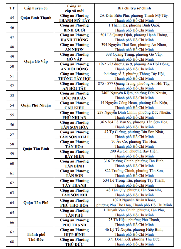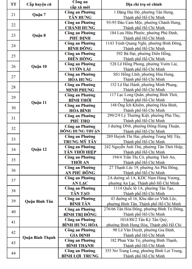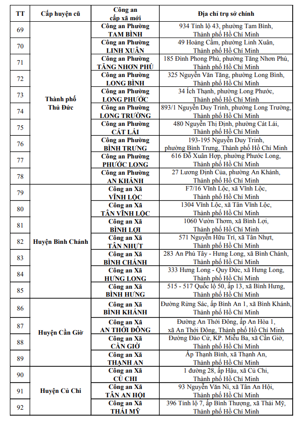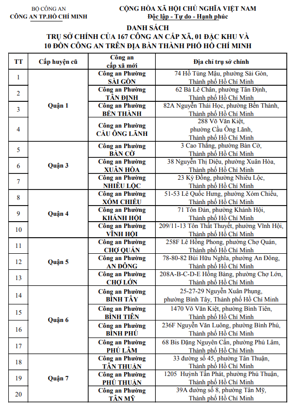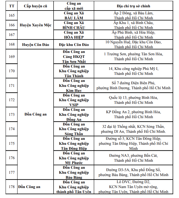 Danh sách 178 trụ sở công an phường, xã, đặc khu và đồn Công an ở TP.HCM mới: