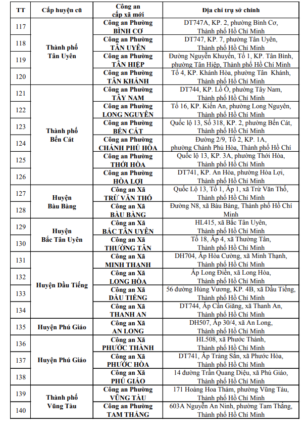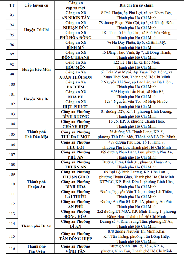 Theo đó, Công an tỉnh Bình Dương, Công an tỉnh Bà Rịa - Vũng Tàu và các tổ chức trực thuộc sáp nhập vào Công an TP.HCM.