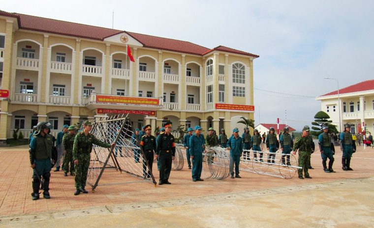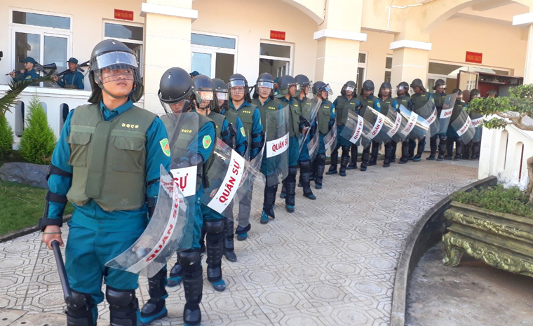 Trước khi thực hiện các tình huống giả định có thể xảy ra, các lực lượng tiến hành duyệt đội ngũ và đưa ra các phương án tác chiến nhằm đối phó, xử lý các tình huống tập trung đông người gây rối an ninh trật tự, bạo loạn.