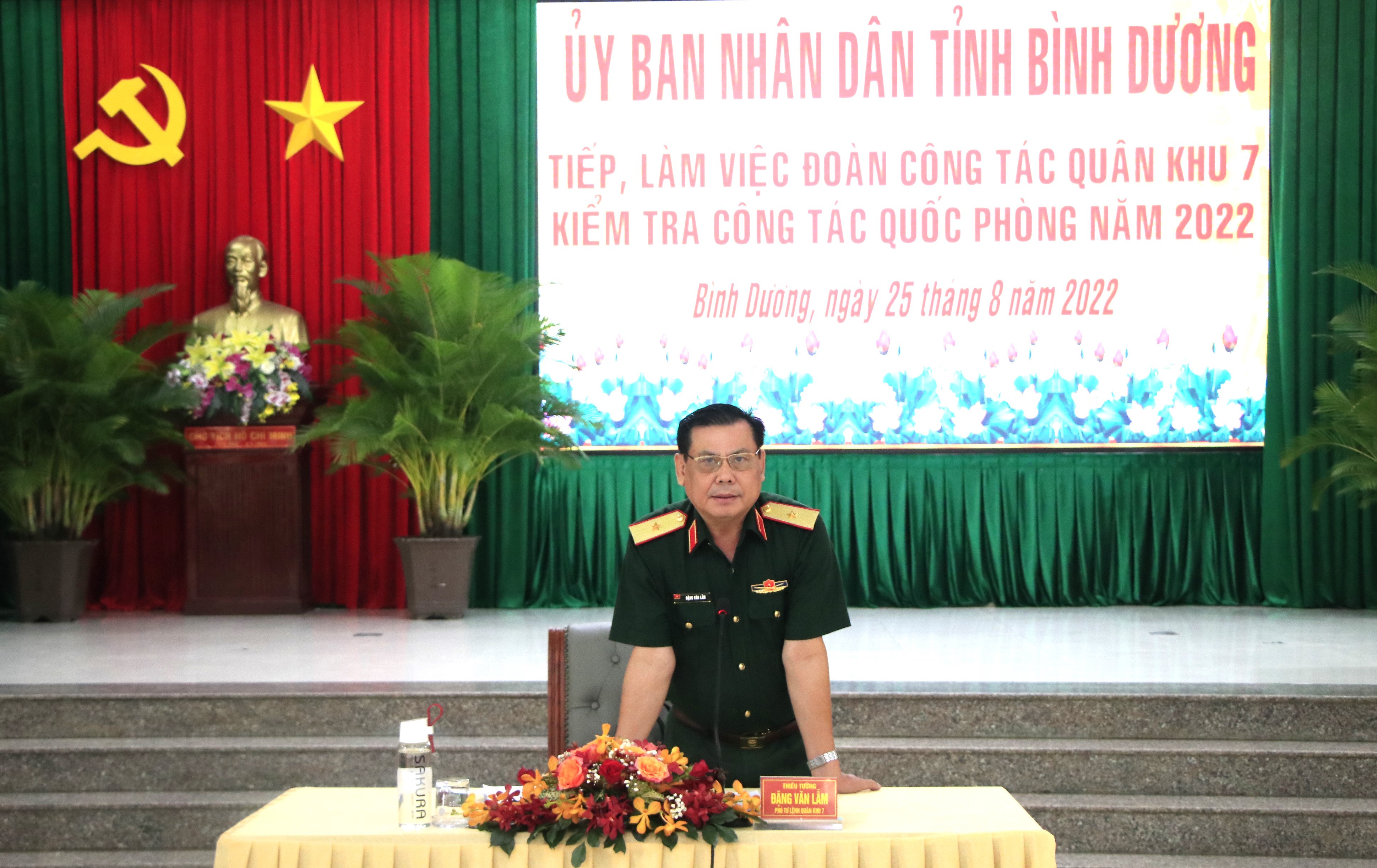 Kết luận kiểm tra, Thiếu tướng Đặng Văn Lẫm, Phó Tư lệnh Quân khu đánh giá, những năm qua tỉnh Bình Dương luôn quan tâm về chế độ chính sách, hỗ trợ nguồn kinh phí, tạo điều kiện thuận lợi đối với công tác quân sự, quốc phòng. Thể hiện trên nhiều mô hình hiệu quả, sáng tạo như tích cực ủng hộ chủ trương của Quân khu “địa phương tuyến sau hỗ trợ địa phương tuyến trước”; xây dựng các khu căn cứ hậu cần kỹ thuật, trích ngân sách địa phương hỗ trợ, nâng cao đời sống cho lực lượng dân quân thường trực…