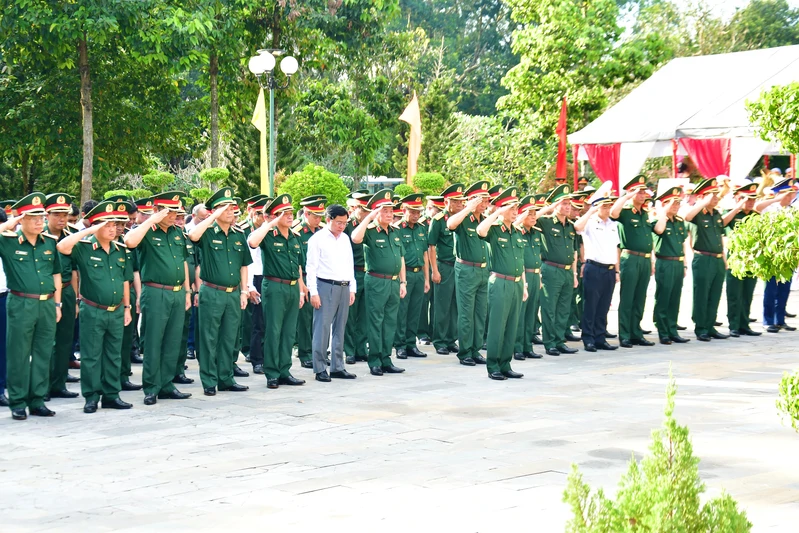 Đoàn công tác Quân ủy Trung ương, Bộ Quốc phòng dành phút mặc niệm bày tỏ lòng thành kính, biết ơn các anh hùng liệt sĩ.