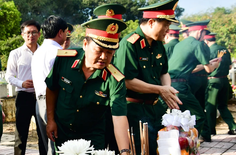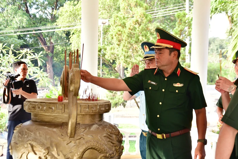 Thiếu tướng Lê Xuân Thế, Tư lệnh Quân khu 7 dâng hương các liệt sĩ.