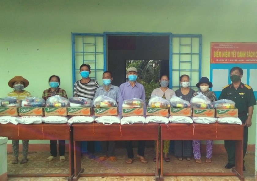 Đội K72, Bộ CHQS tỉnh Bình Phước tặng quà người dân khó khăn do dịch Covid-19.