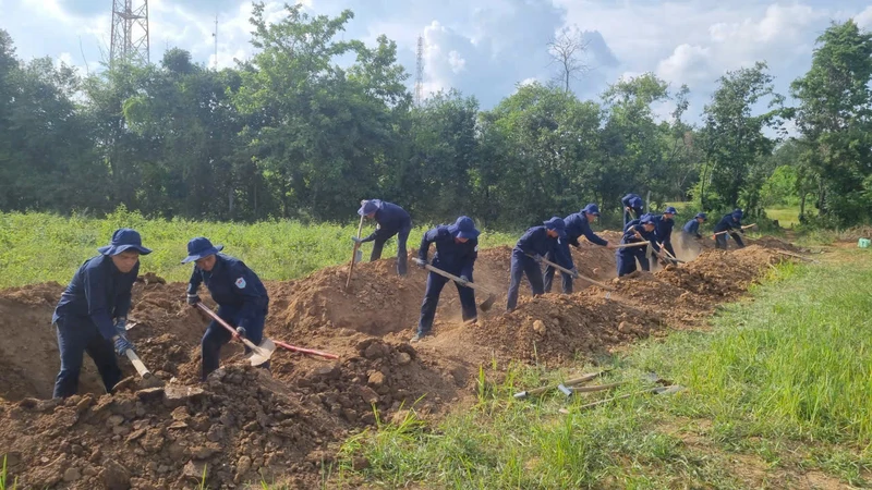 Cán bộ, chiến sĩ Đội K73 tổ chức đào tìm hài cốt liệt sĩ.