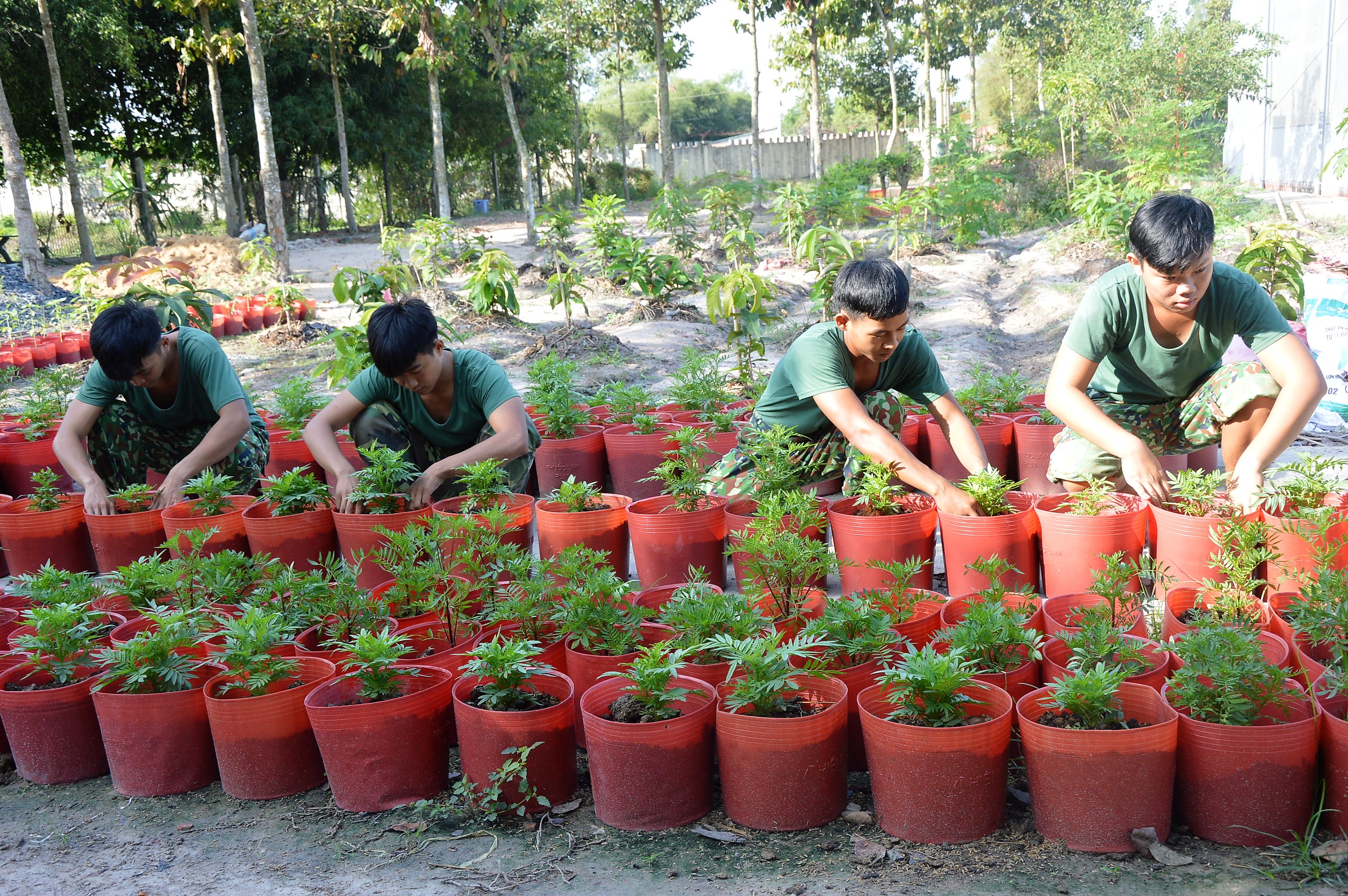 Chuẩn bị Tết này cho chiến sĩ, ngoài chế độ tiêu chuẩn của cấp trên quy định, trước đó hơn 2 tháng, đại đội đã chủ động gieo trồng các loại rau, củ, quả có chất lượng cao để đưa thêm vào bữa ăn của bộ đội, không phụ thuộc vào giá cả thị trường. Với diện tích gần 1.000 m2, khu tăng gia sản xuất liên hoàn vườn-ao-chuống có nhiều loại rau, củ quả, như mướp đắng, rau cải, mướp, chuối…và 12 con lợn, trong đó có 4 con khoảng gần 100 kg.