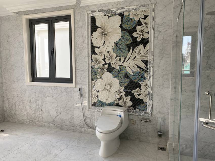 Nhờ chống ẩm, chống trơn, mosaic giúp không gian thư giãn thêm phần tinh tế. Khi kết hợp cùng ánh sáng vàng hoặc đèn LED, gạch tỏa ra hiệu ứng lung linh như một khu nghỉ dưỡng cao cấp.