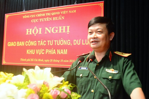 (QK7 Online) - Sáng ngày 28/10/2016, Cục Tuyên huấn, Tổng Cục Chính trị Quân đội nhân dân Việt Nam tổ chức Hội nghị giao ban công tác tư tưởng - dư luận khu vực phía Nam. Thiếu tướng Trần Hoài Trung, Cục trưởng Cục Tuyên huấn Tổng Cục Chính trị Quân đội nhân dân Việt Nam chủ trì hội nghị.