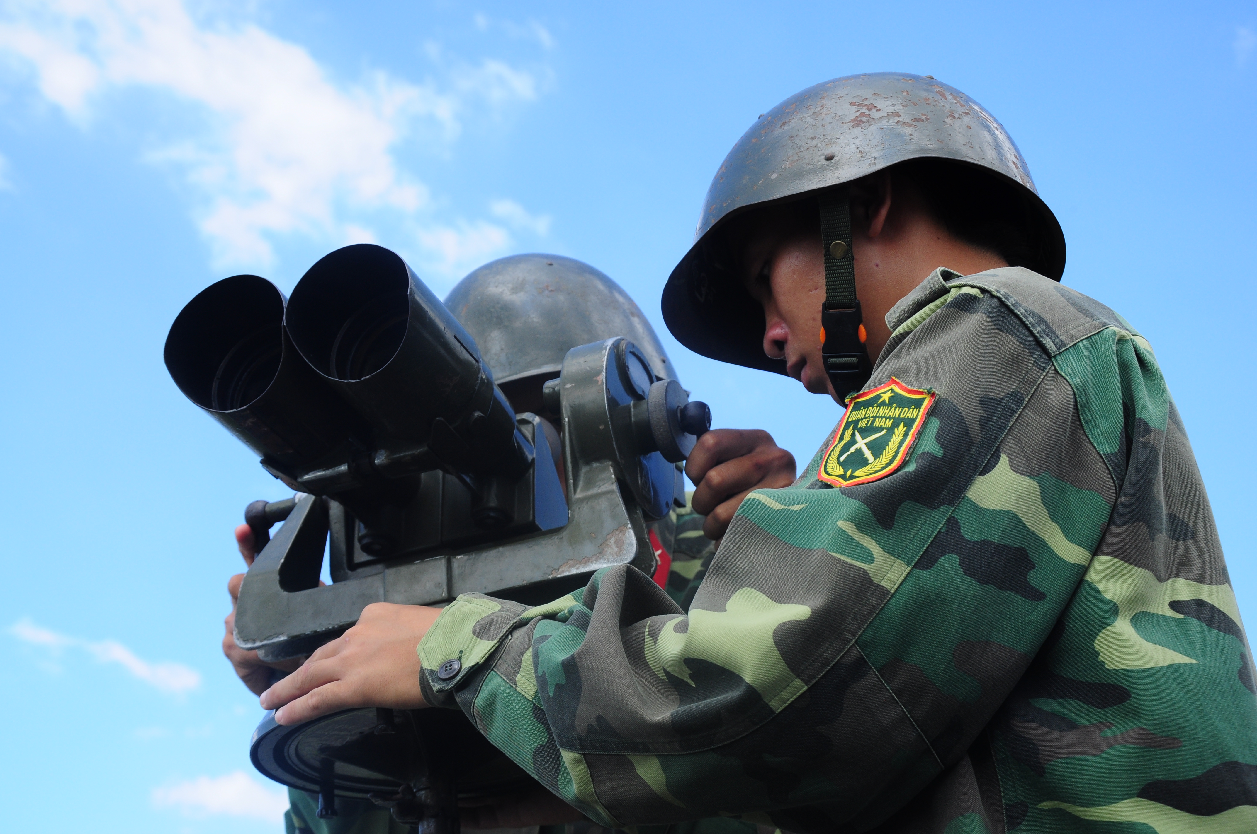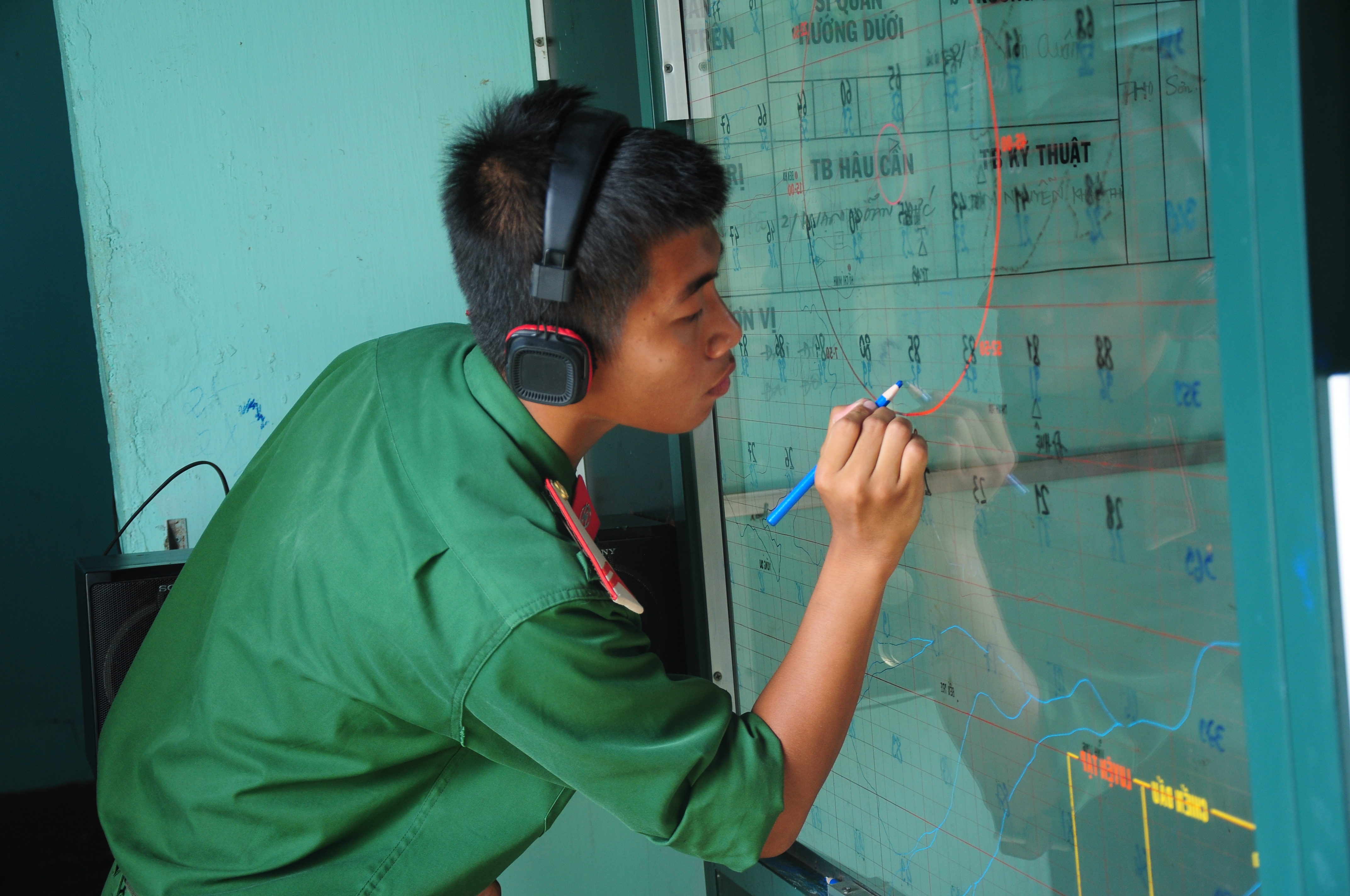 Chiến sĩ tiêu đồ theo dõi đường bay của mục tiêu