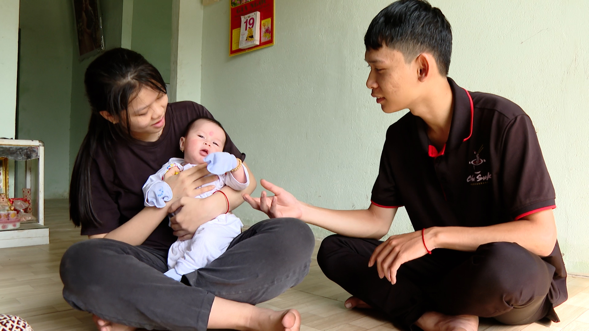 Vợ của Lê Minh Sang động viên chồng trước ngày lên đường nhập ngũ.