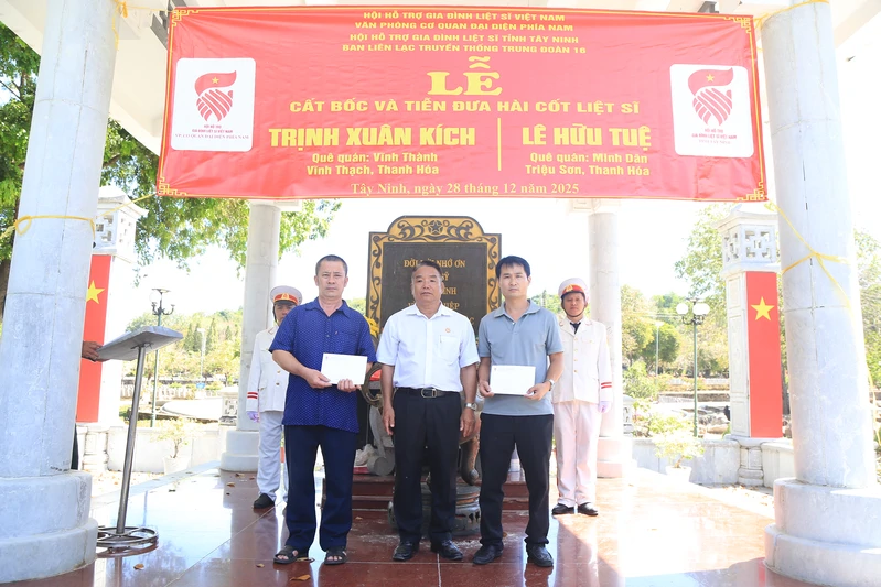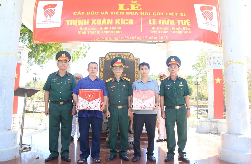 Trong đợt này, Văn phòng Cơ quan đại diện phía Nam, các đơn vị và người thân liệt sĩ đã tổ chức cất bốc, di dời đưa về quê an táng Liệt sĩ Lê Hữu Tuệ, sinh năm 1945, xã Minh Dân, huyện Triệu Sơn (nay là xã Triệu Sơn), tỉnh Thanh Hóa, hy sinh năm 1967 tại Mặt trận phía Nam khi đang là Thượng sĩ, chức vụ Tiểu đội trưởng thuộc Đại đội 11, Tiểu đoàn 9, KB; Liệt sĩ Trịnh Xuân Kích, sinh năm 1956, xã Vĩnh Thành, huyện Vĩnh Lộc (nay là xã Vĩnh Lộc) tỉnh Thanh Hóa, thuộc Đại đội 8, Tiểu đoàn 3, Lữ đoàn 273, Quân đoàn 3 (nay là Quân đoàn 34), hy sinh năm 1978 tại biên giới phía Tây Nam Tổ quốc, cấp bậc Hạ sĩ - Pháo thủ xe tăng, cả hai Liệt sĩ Tuệ và Kích hiện đang được an táng tại Nghĩa trang liệt sĩ Đồi 82, xã Tân Biên, tỉnh Tây Ninh.