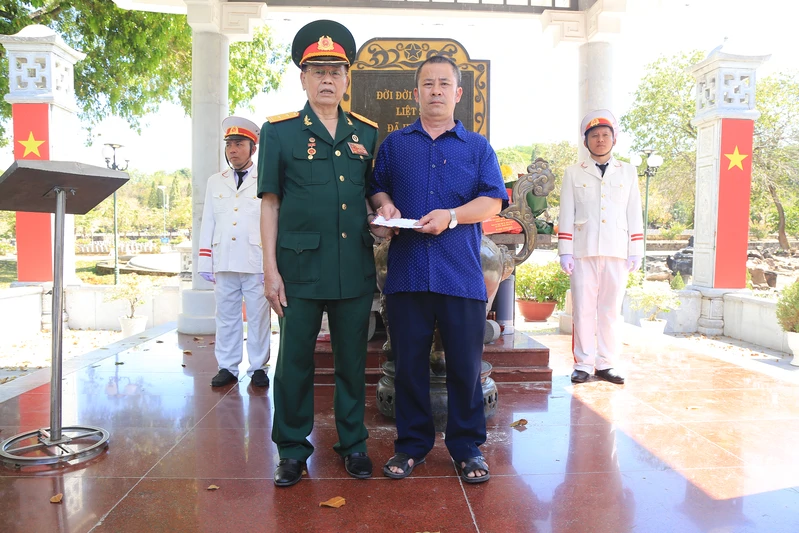 Ban liên lạc truyền thống Trung đoàn 16, Sư đoàn 5, Mặt trận 479, Quân khu 7 tặng quà cho gia đình Liệt sĩ Lê Hữu Tuệ.