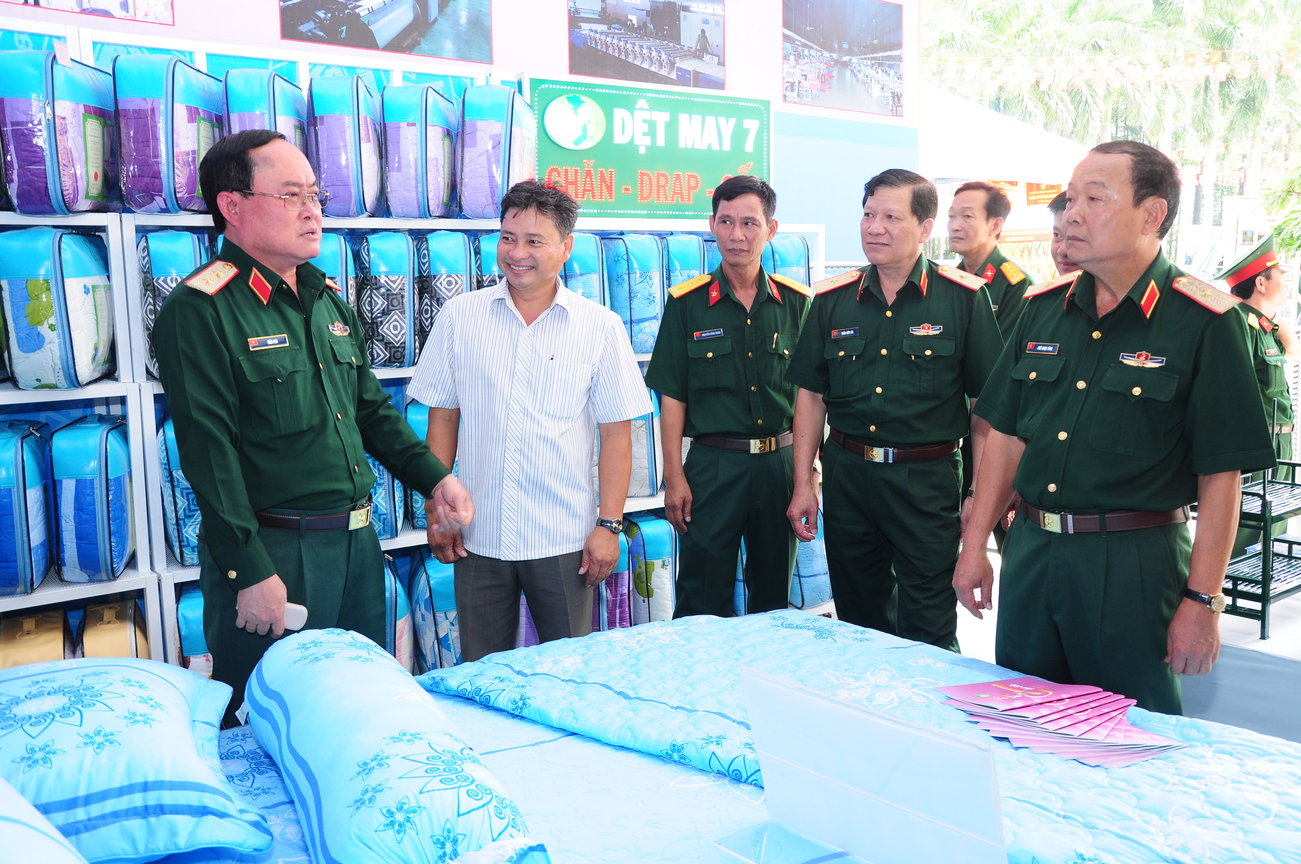 Thủ trưởng Bộ Quốc phòng, thủ trưởng Bộ Tư lệnh Quân khu 7 tham quan cửa hàng giới thiệu sản phẩm Công ty Dệt may 7