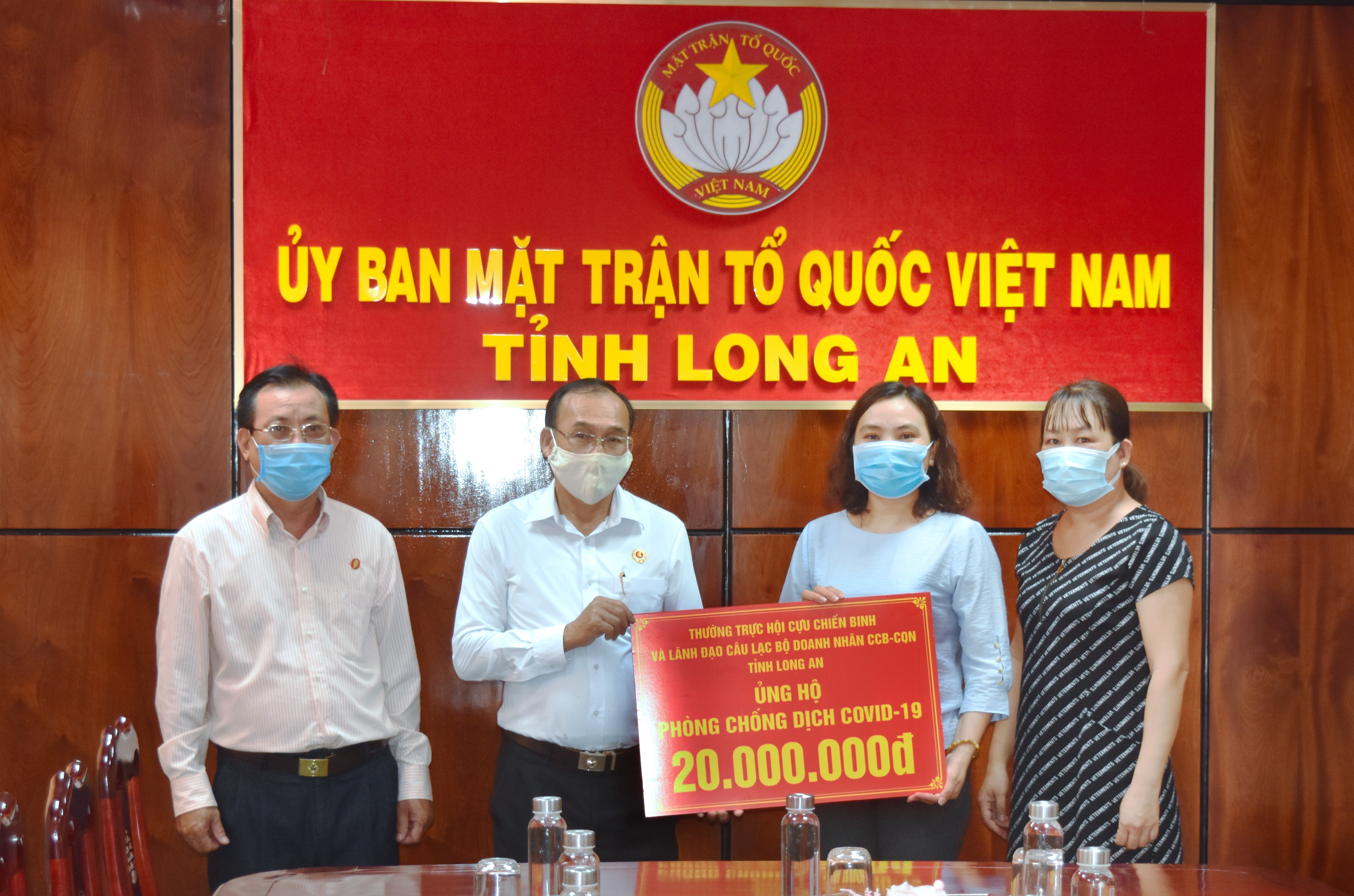 Theo đó, với tinh thần tích cực, khẩn trương hiệu quả, hưởng ứng lời kêu gọi của UBMTTQ Việt Nam tỉnh Long An, Hội CCB tỉnh vận động tổ chức Hội cơ sở và trao số tiền 20 triệu đồng ủng hộ phòng chống dịch Covi-19, nhằm chung tay góp sức cùng hệ thống chính trị và Nhân dân tập trung kiểm soát nhanh chóng, kịp thời nguy cơ bùng phát dịch bệnh trên địa bàn tỉnh bảo vệ sức khỏe cho Nhân dân.