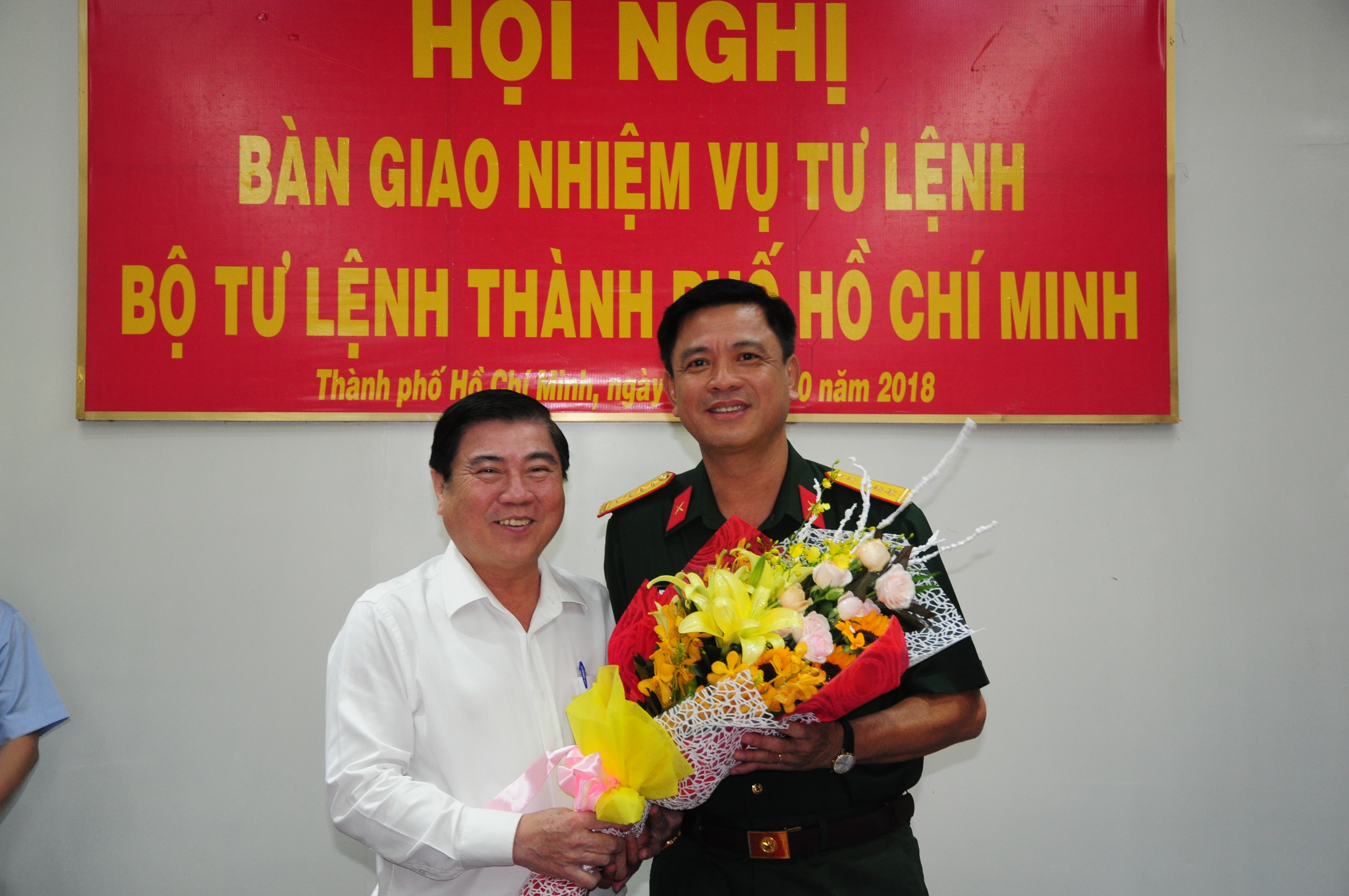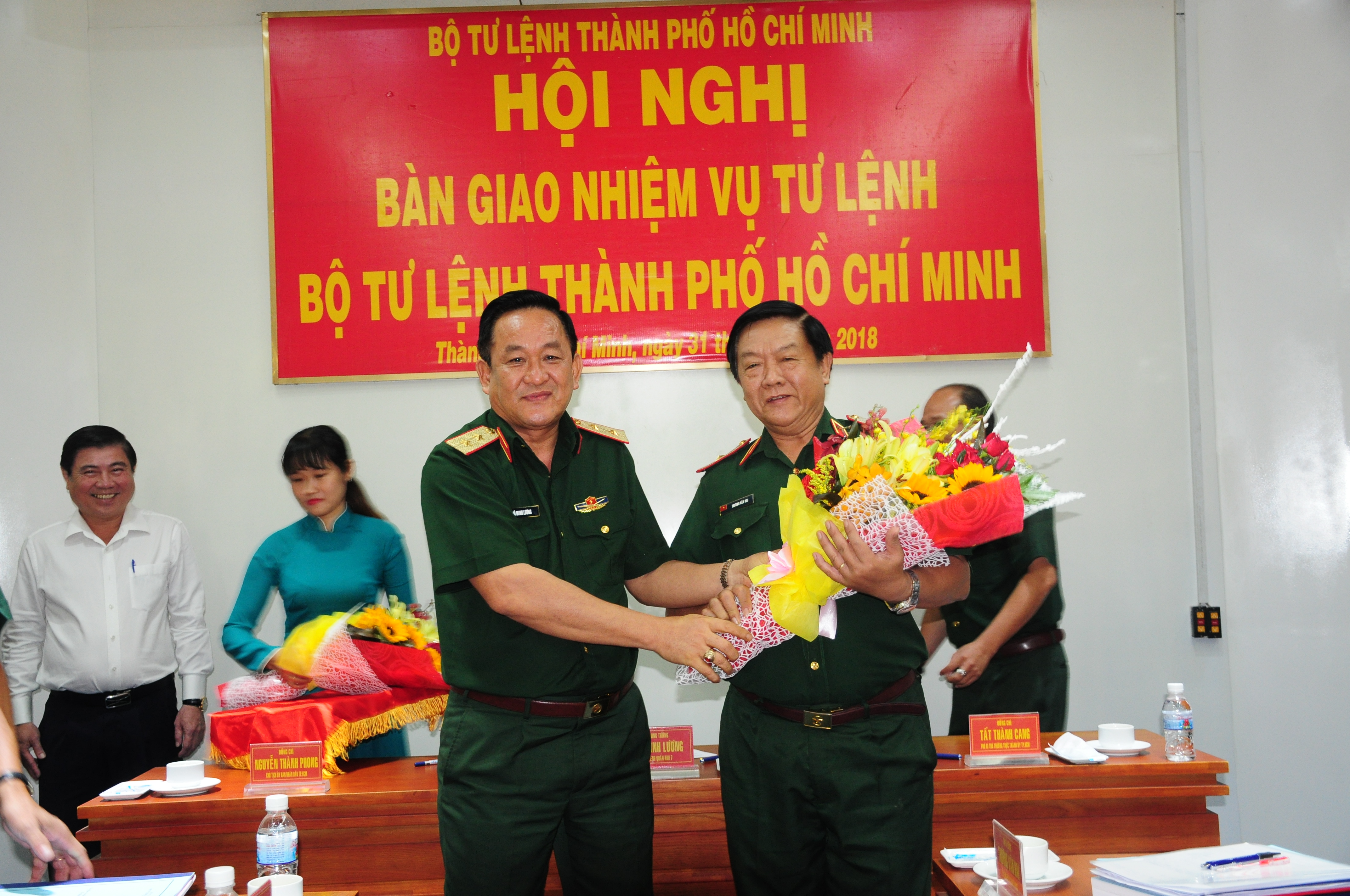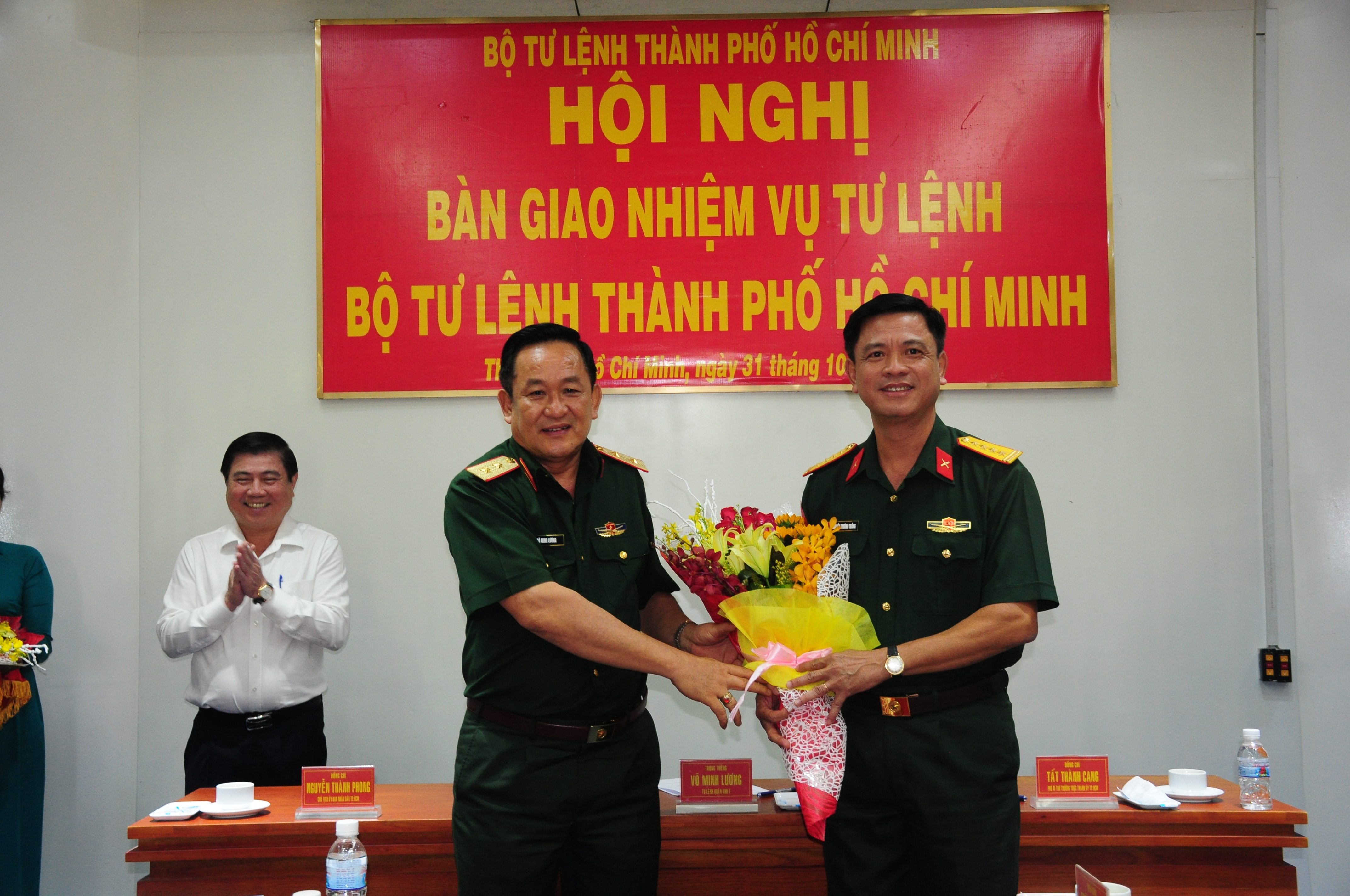 (QK7 Online) - Ngày 31/10 tại thành phố Hồ Chí Minh (TP.HCM), Bộ Tư lệnh TPHCM tổ chức hội nghị bàn giao nhiệm vụ Tư lệnh, Bộ Tư lệnh thành phố Hồ Chí Minh. Đến dự có Trung tướng Võ Minh Lương, Ủy viên Ban Chấp hành Trung ương Đảng, Tư lệnh Quân khu 7; đồng chí Nguyễn Thành Phong, Ủy viên Ban chấp hành Trung ương Đảng,Phó Bí thư Thành ủy – Chủ tịch UBND TP.HCM. Đồng chí Tất Thành Cang, Ủy viên Ban Chấp hành Trung ương Đảng, Phó Bí thư Thường trực Thành ủy TPHCM.