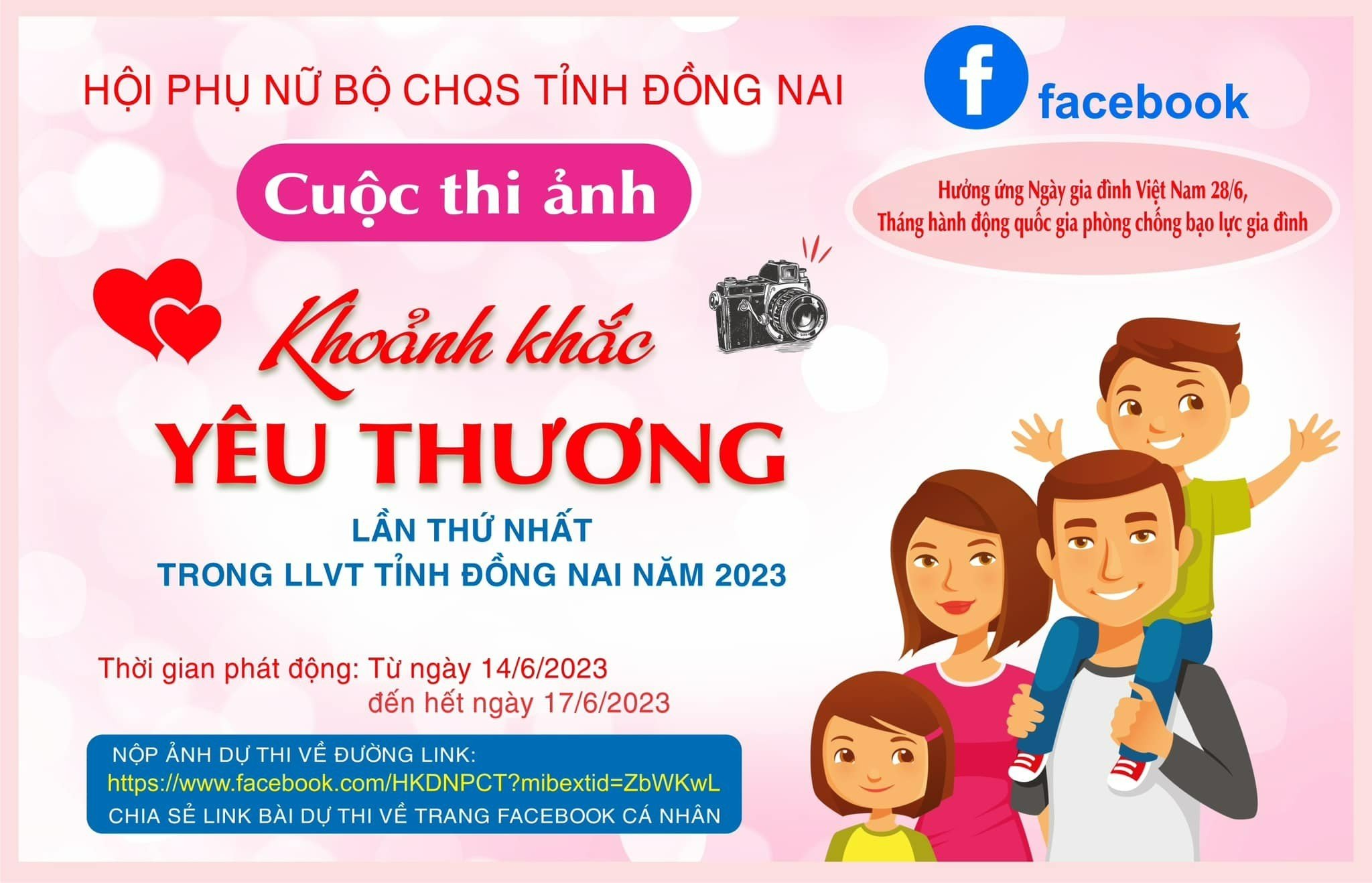Cuộc thi ảnh đẹp online “Khoảnh khắc yêu thương” được Hội Phụ nữ Bộ CHQS tỉnh Đồng Nai phát động từ ngày 14 – 17/6/2023.